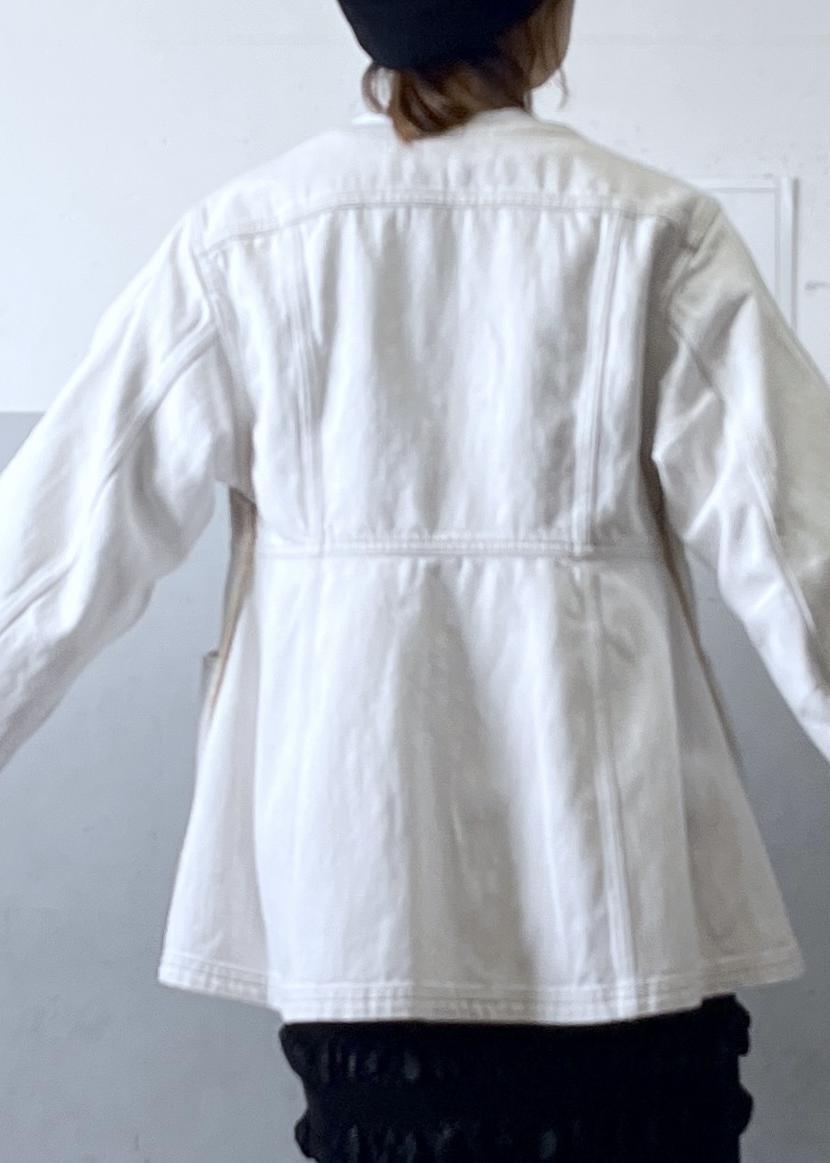 デニム素材のペプラムデザインなので、適度なカジュアルさと女性らしさを兼ね備えた一着。