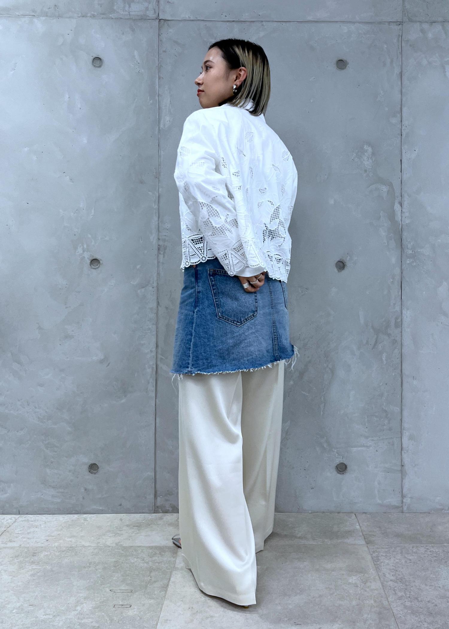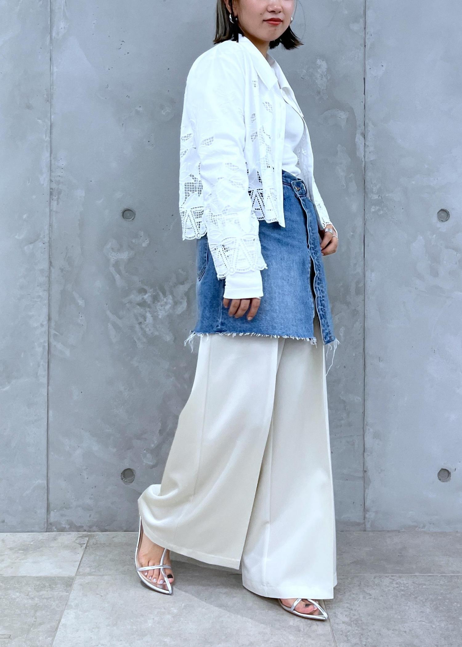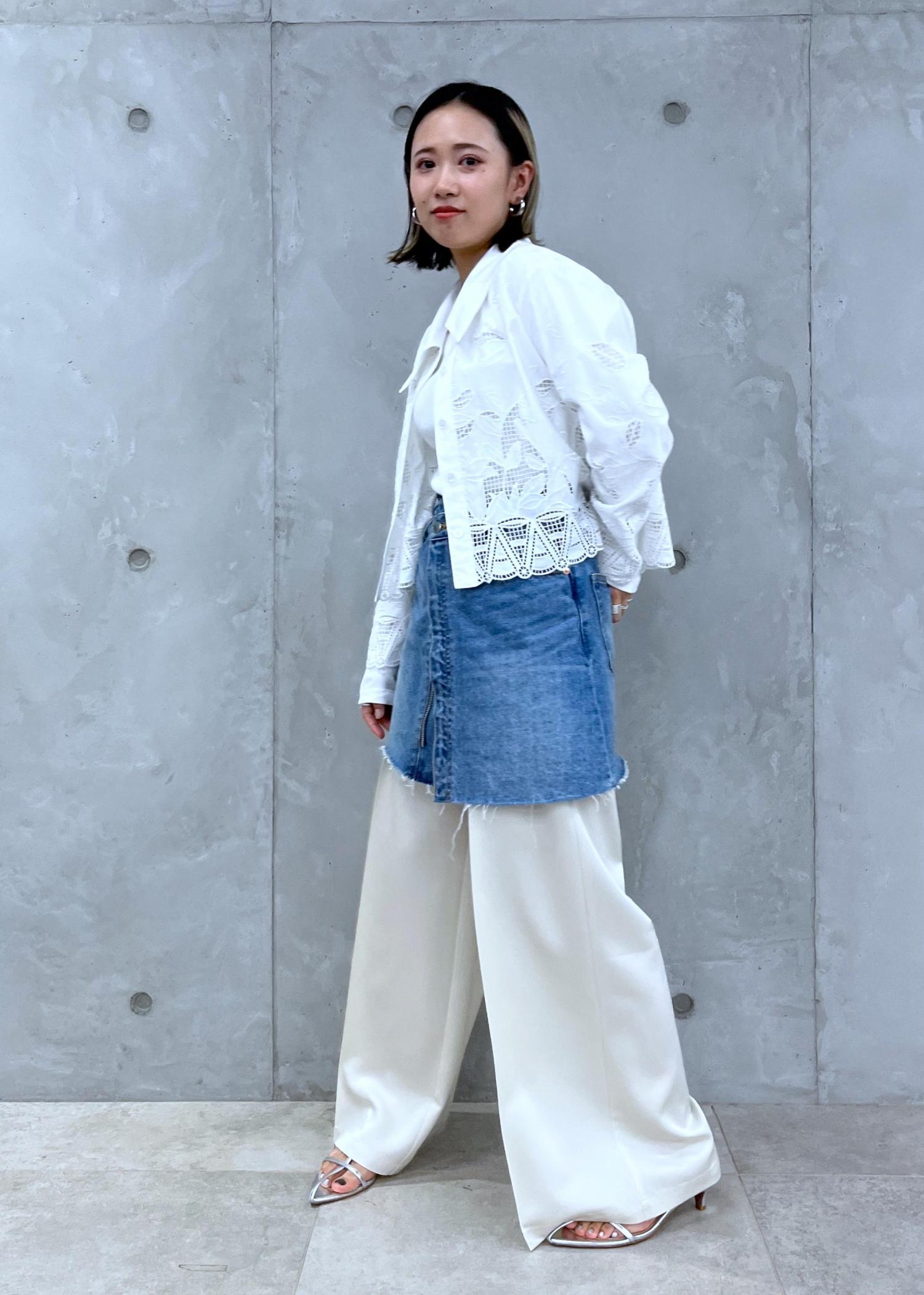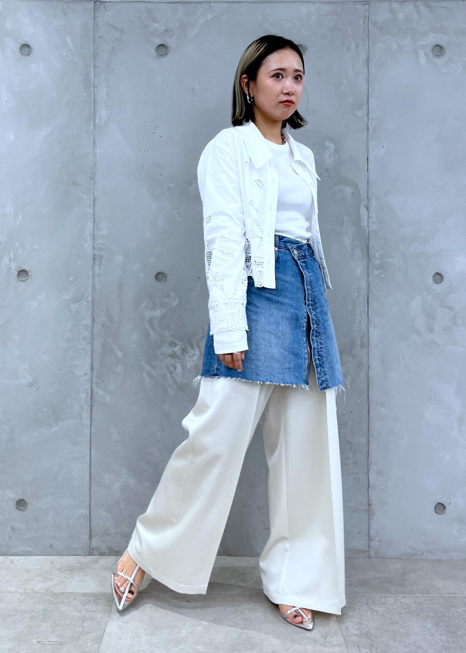 ホワイトのワントーンコーデにデニムをプラスしたスタイリング!