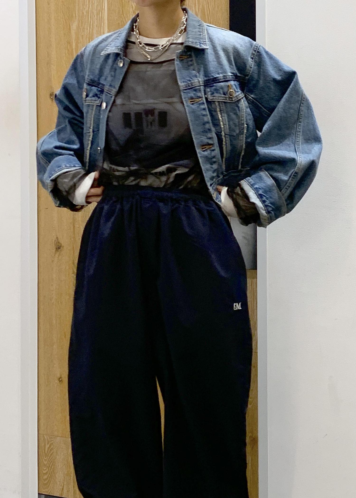 コンパクトなシルエットとフォルムスリーブが女性らしいデザインのGジャン。