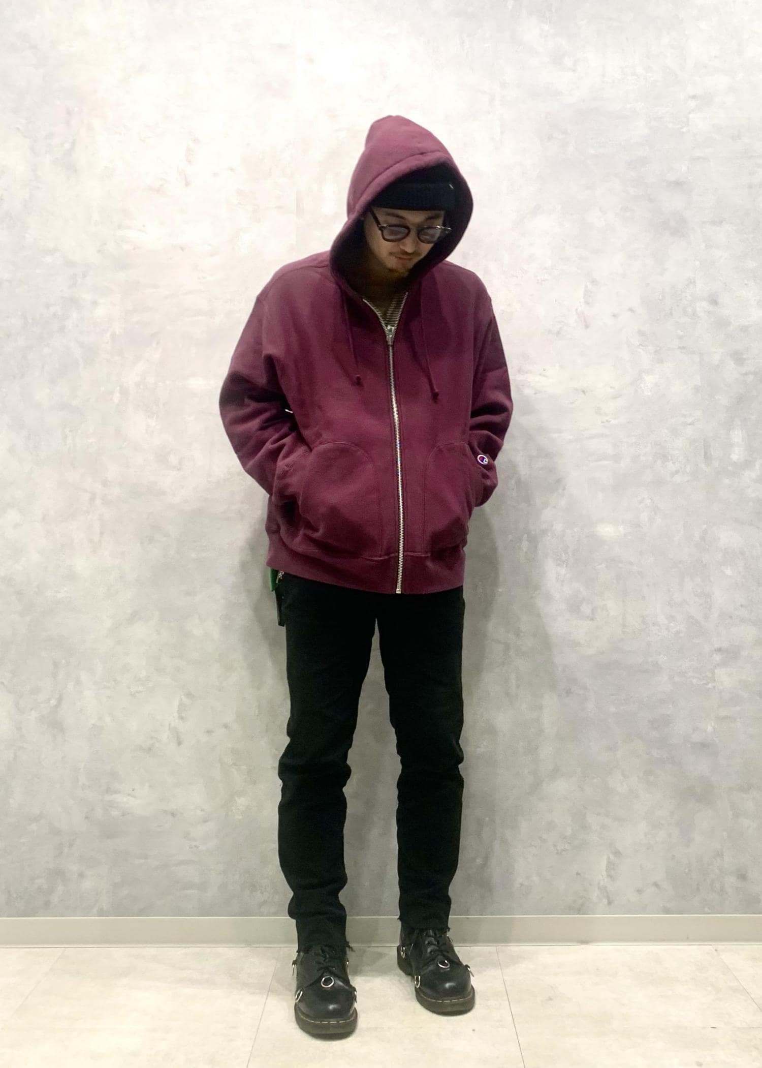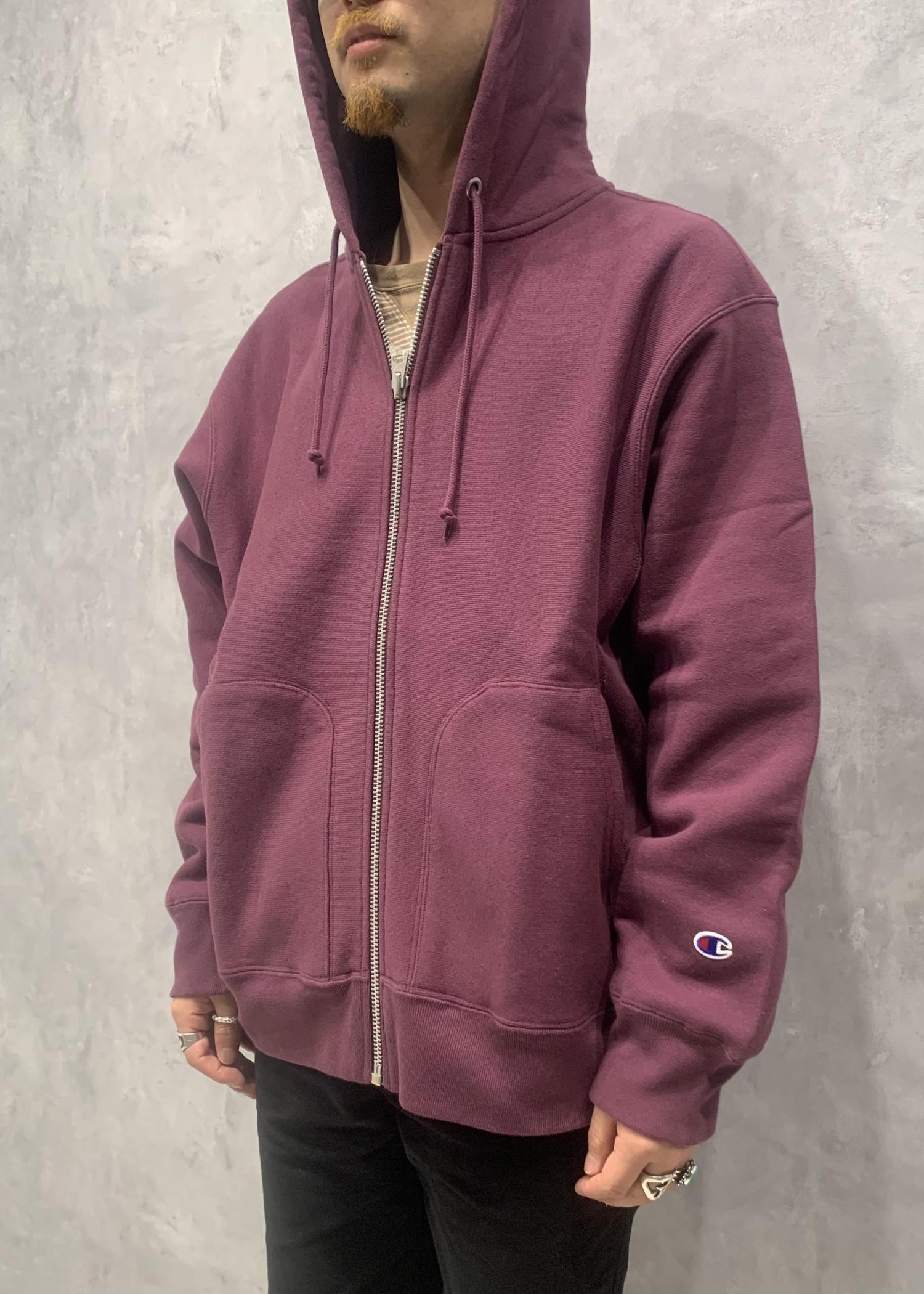 ADAM ET ROPÉ HOMME《別注》【CHAMPION】SEPARATE POCKET ZIP UP REVERSE WEAVE HOODIE / UNISEXワイン / L¥7,700レビュー【サイズ感】171cm,58kg / 着用サイズL