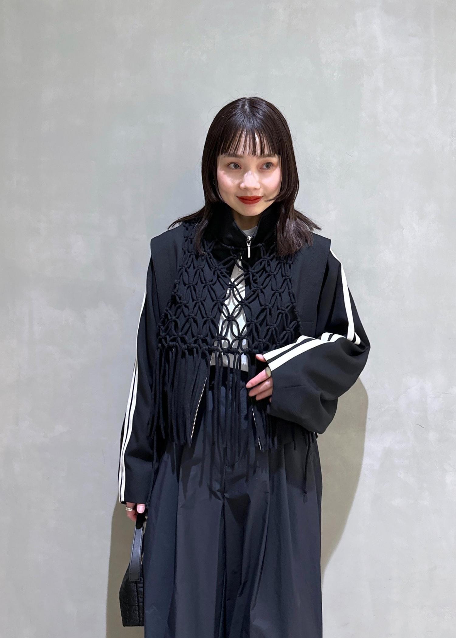 ブルゾンにレイヤードしたのが今回のポイント。