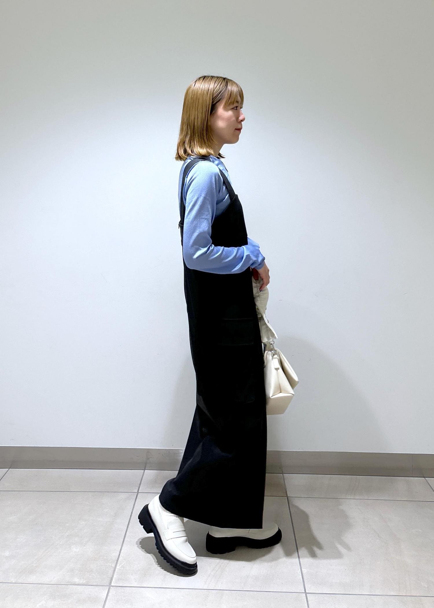 太めの肩紐や大きめのポケットがカジュアル見えしますが、シアーのシンナーと合わせることで抜け感が出て、合わせ方次第で色んな着方ができます☺︎