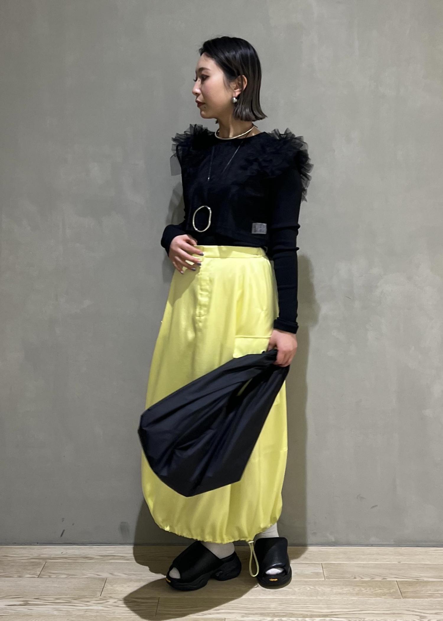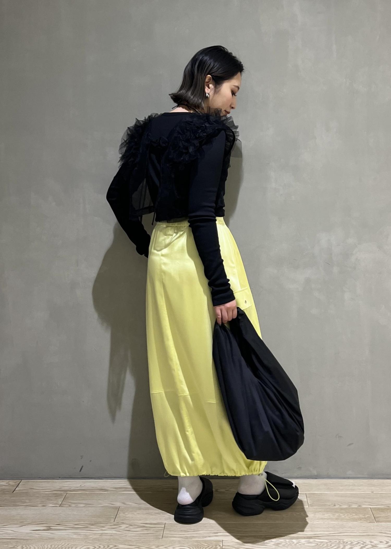 アウトレットADAM ET ROPÉ FEMME【サステナブル】サテンバルーンカーゴスカートイエロー / 36¥7,172レビューウエスト部分がゴムになっているのでとても着心地良いです!