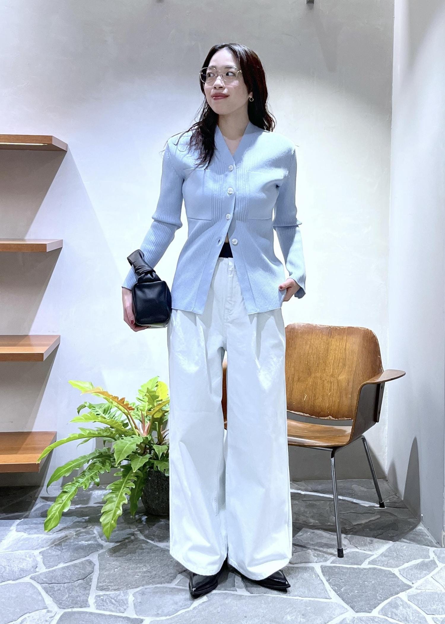テーラードラペルがキリッとかっこいいデザイン。袖はほんのり丸みのあるシルエットで女性らしい柔らかさも。