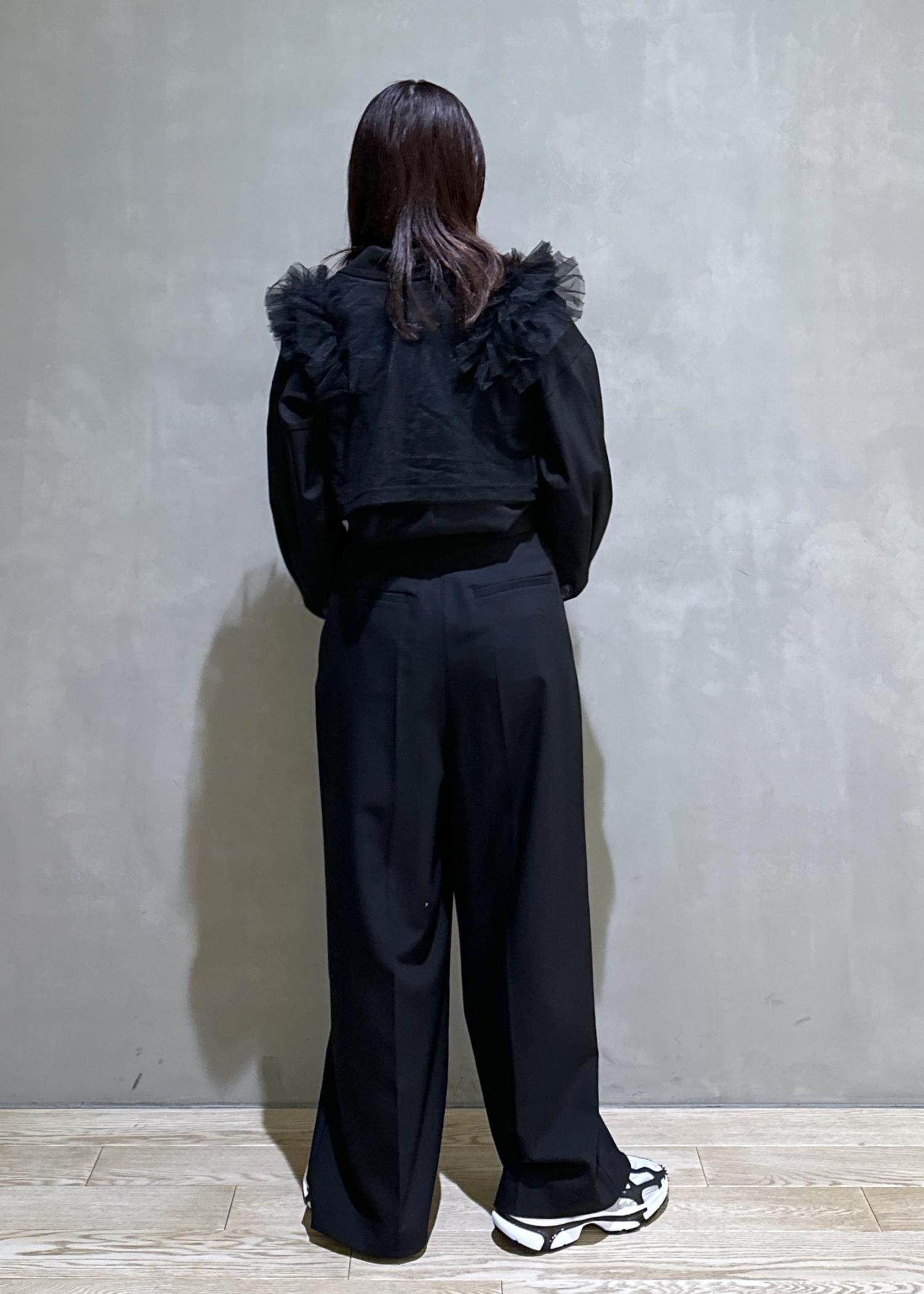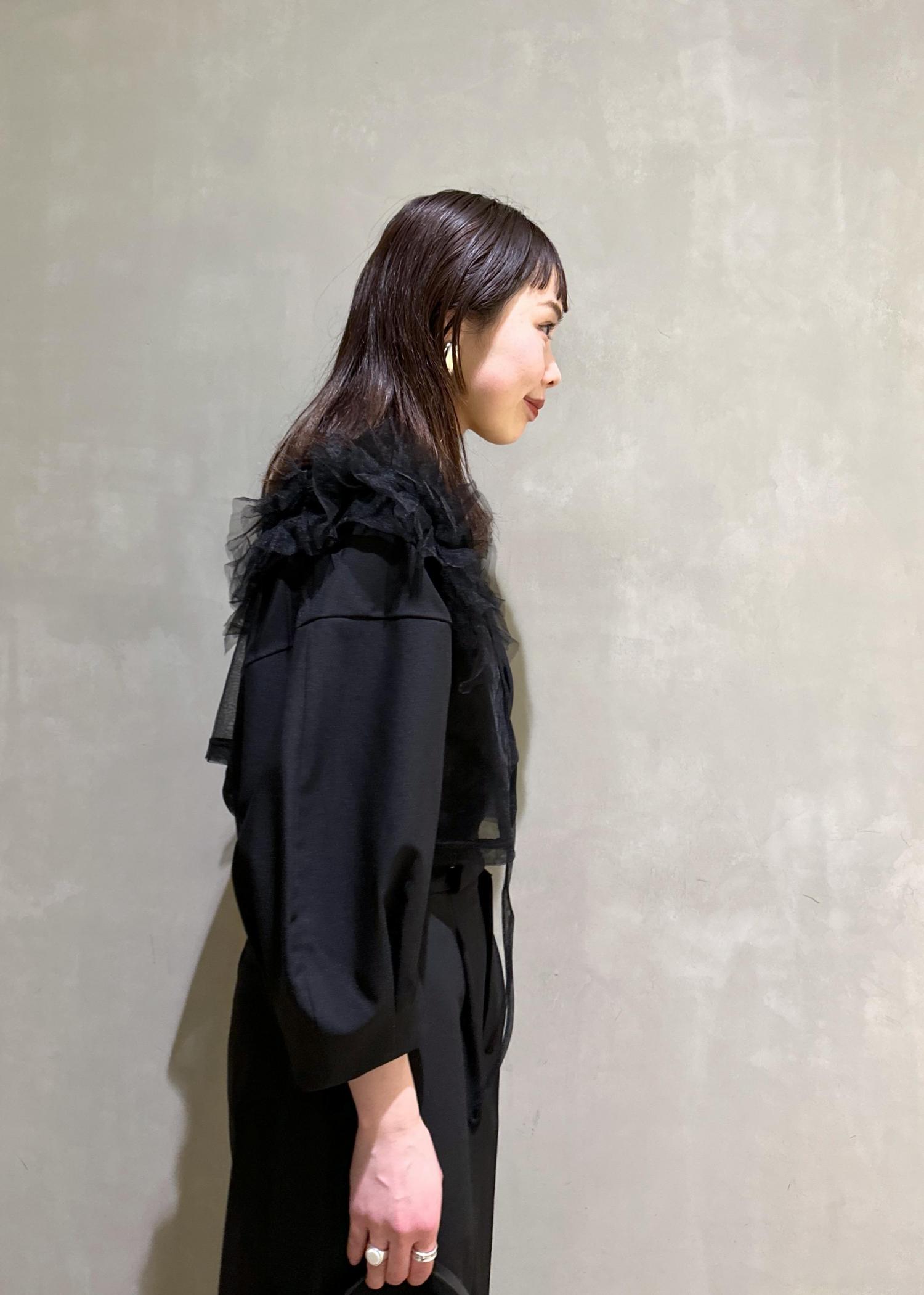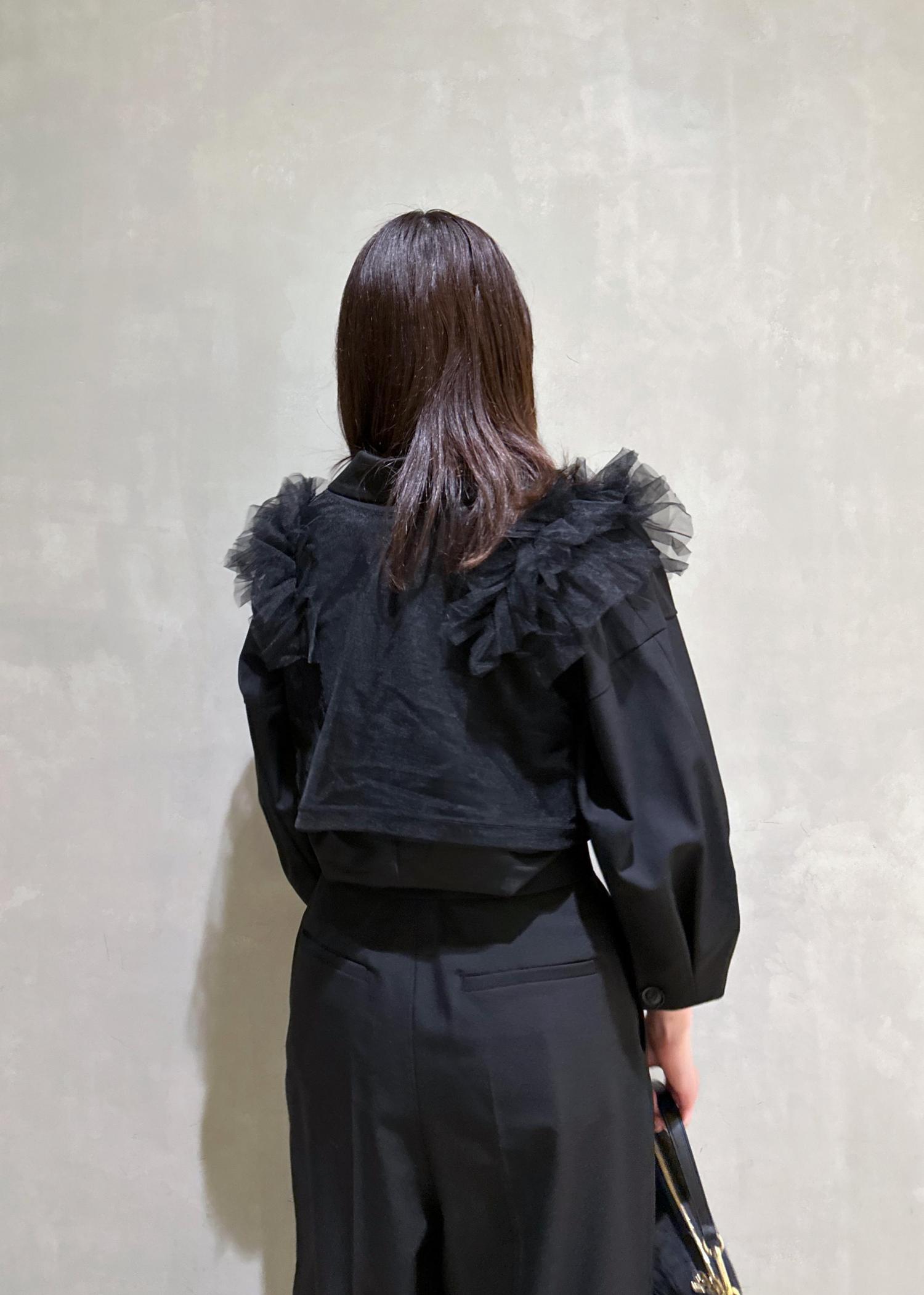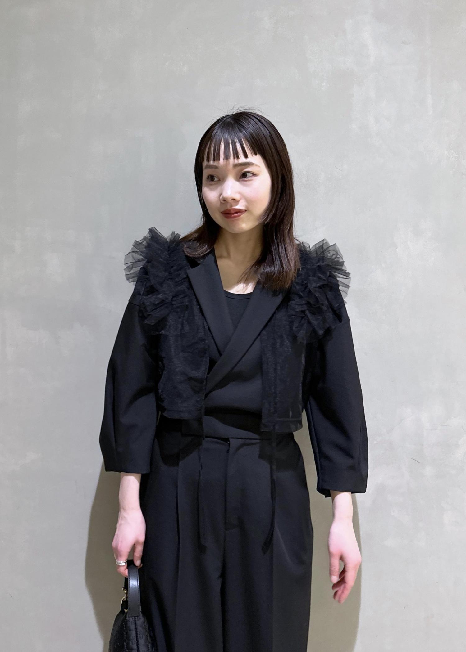 チュールベストを合わせて女性らしく。