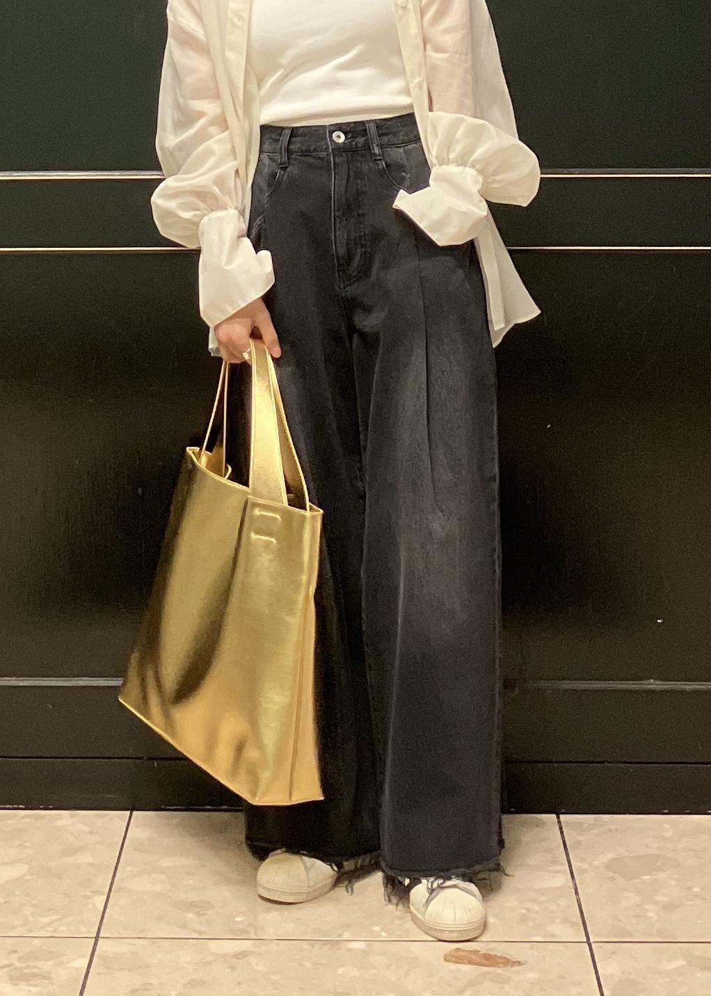 裾がダメージ加工があり、かなりワイドのデニムですごく可愛いです!