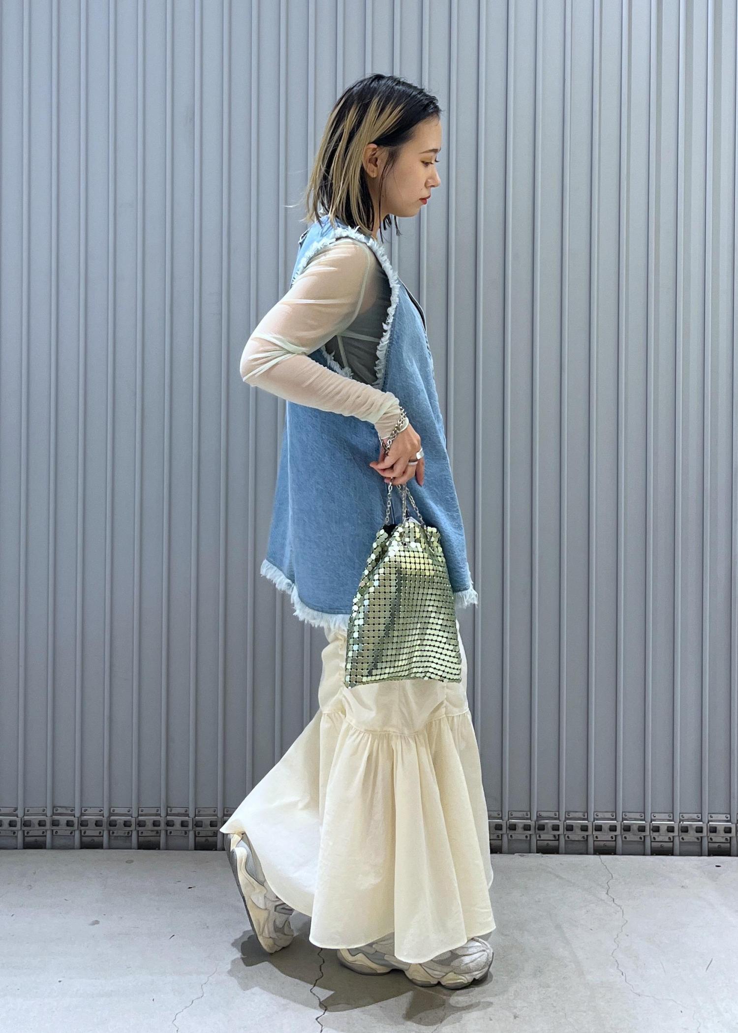 ADAM ET ROPÉ FEMME【サステナブル】メタル巾着ミニバッググリーン / F¥13,200レビューキラキラデザインがコーディネートのポイントに♡