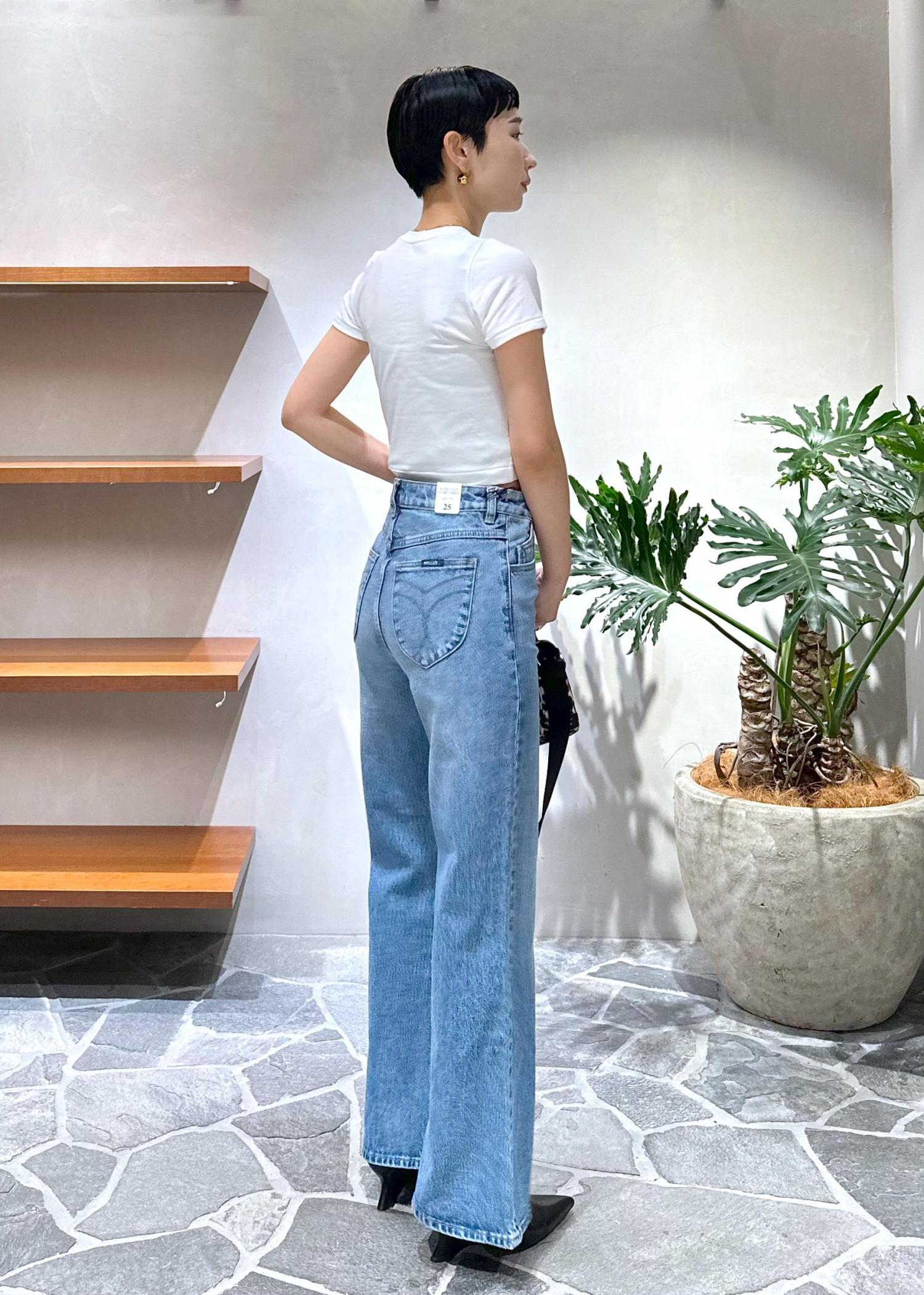今回は分かりやすくウエストを少し下げてデニムを着てます
