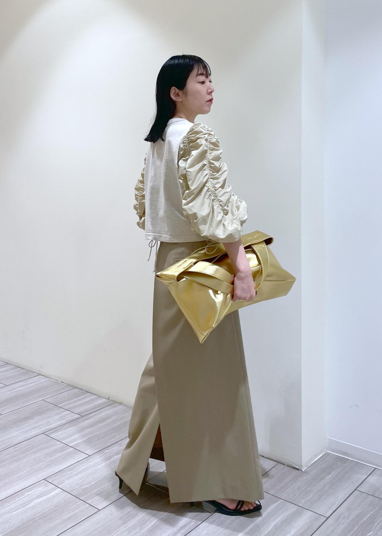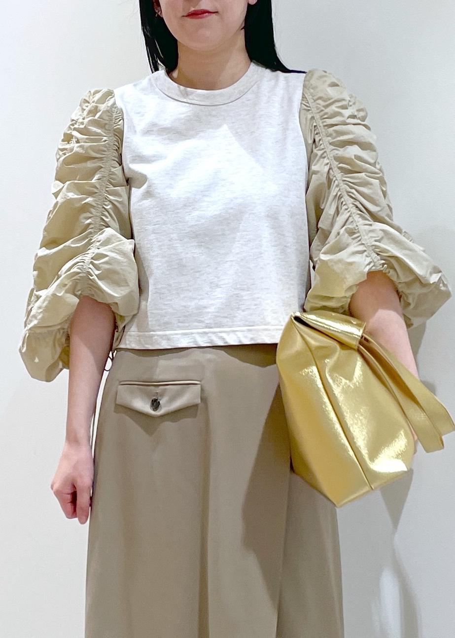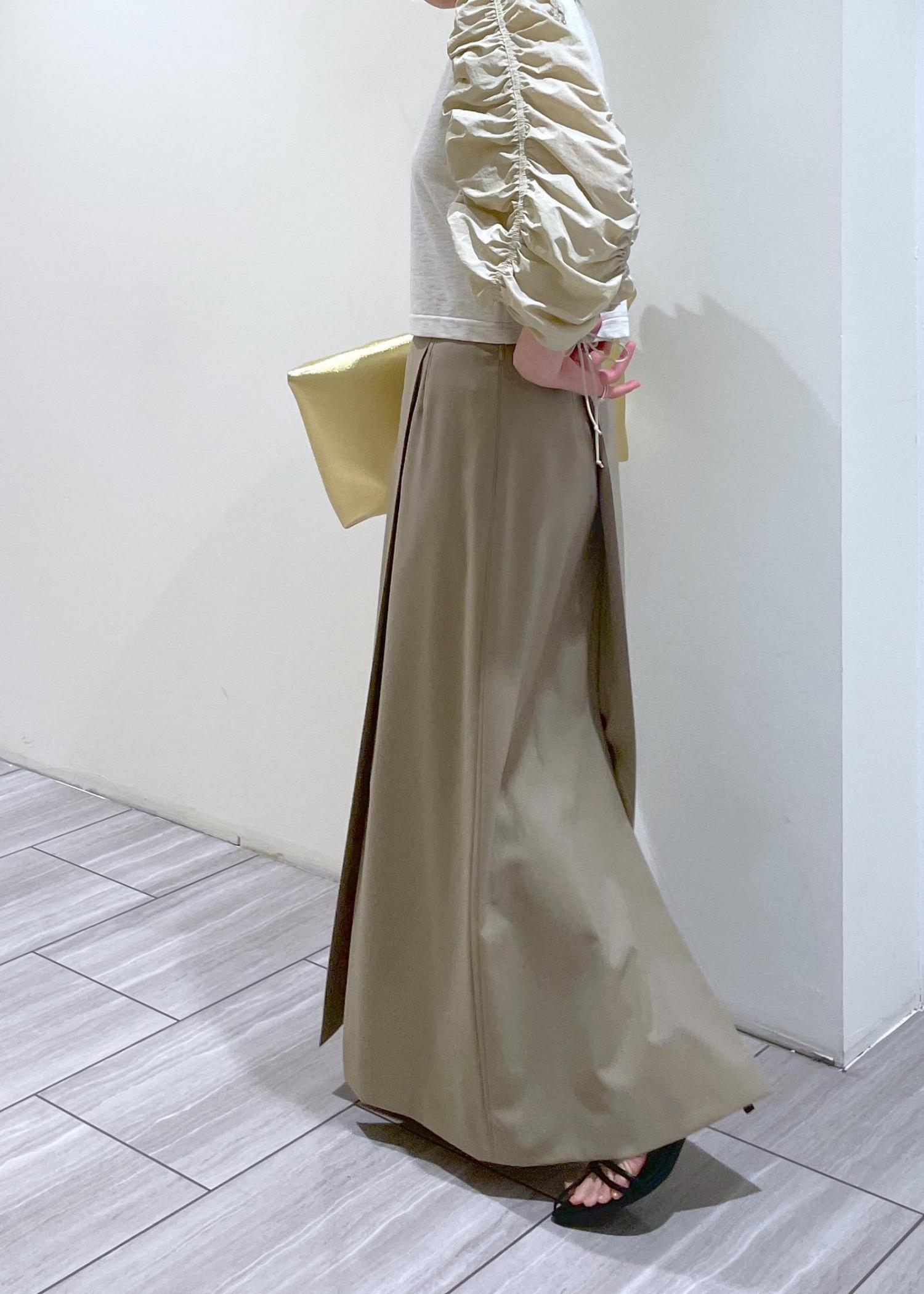 綺麗目な生地感のスカートを合わせれば、なんとなくきちんと感◎