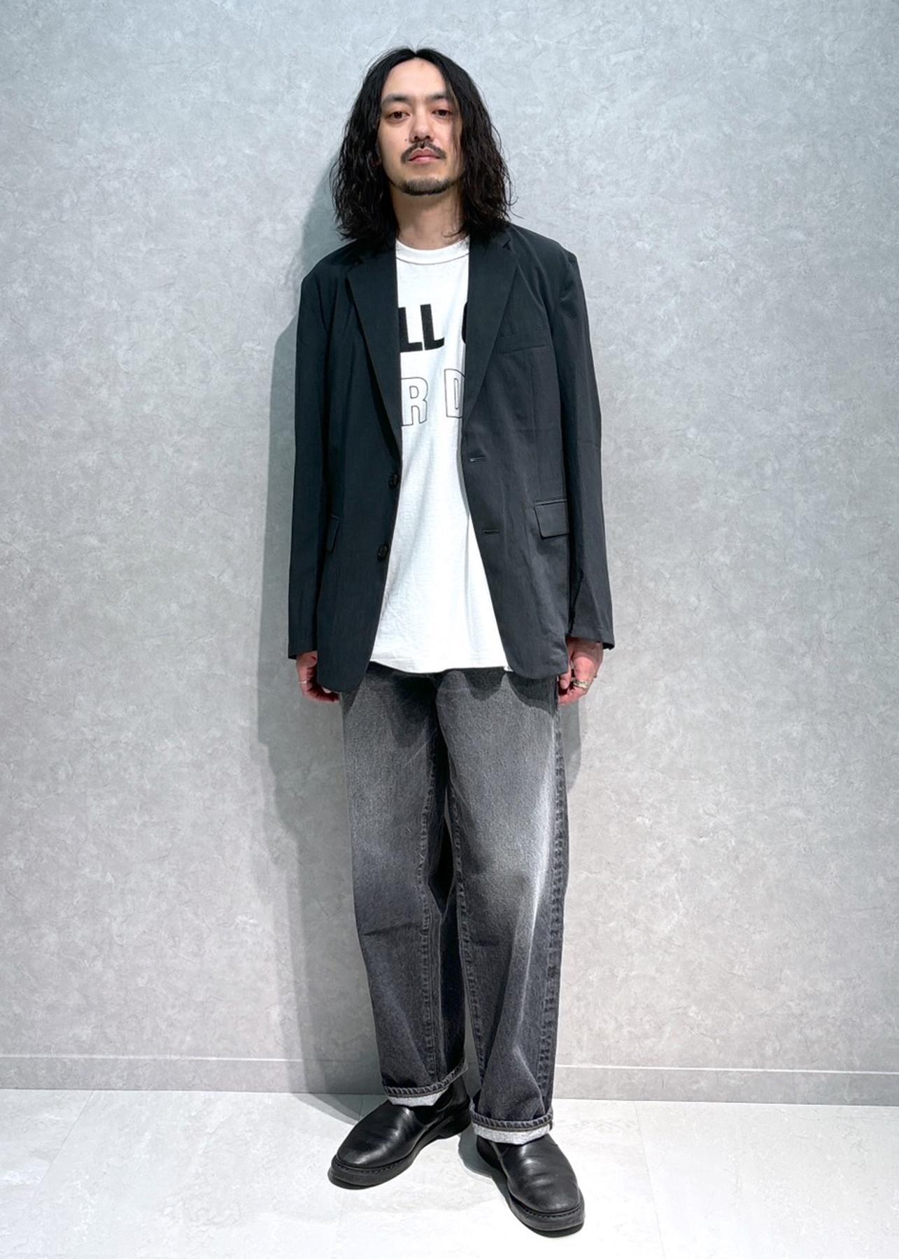 インナーにはロゴTシャツを入れてデニムでカジュアルに。