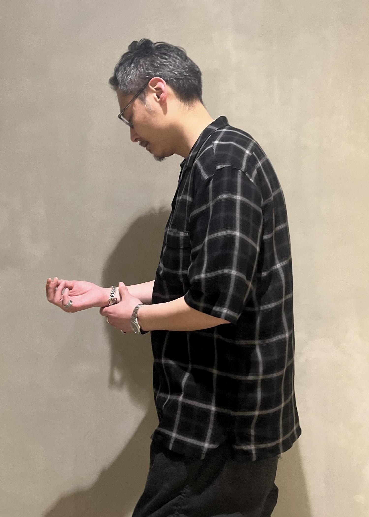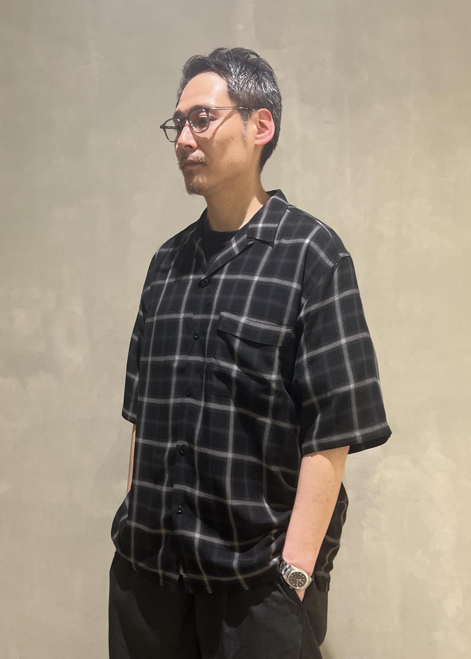 WILD LIFE TAILOR ドレープチェック ハーフスリーブ オープンカラー シャツ スタイリング