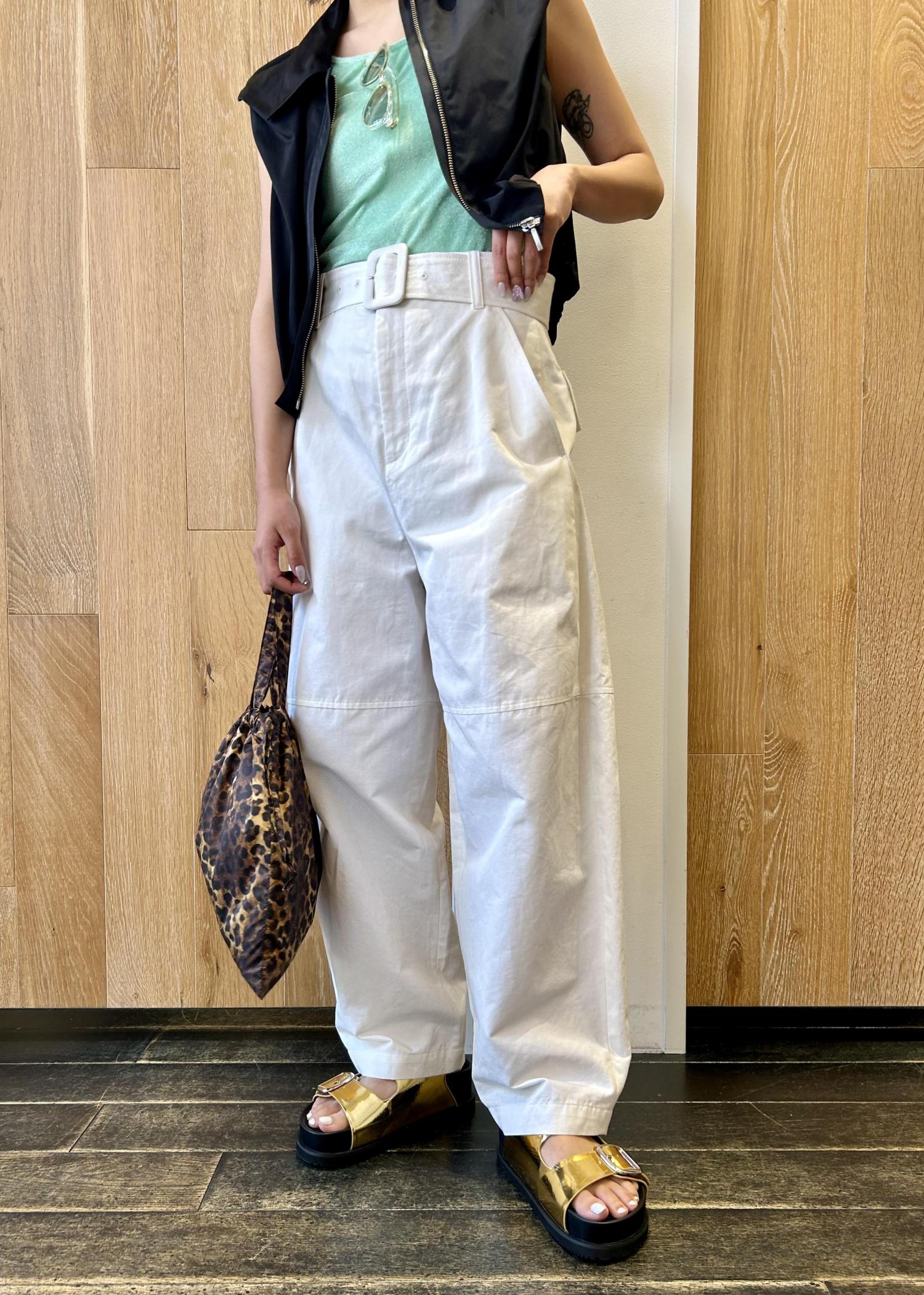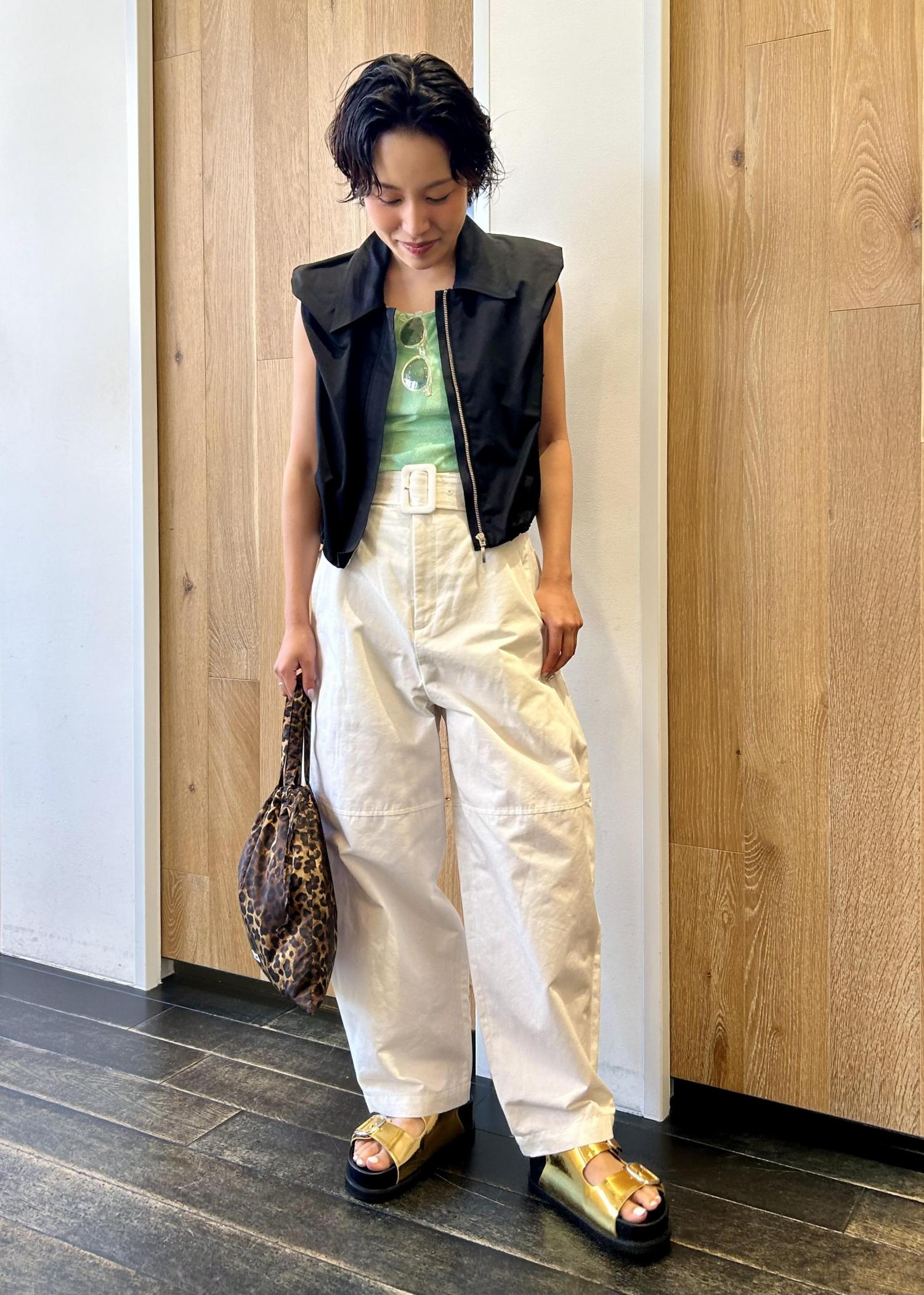 シンプルながらパンチを効かせたコーデ。