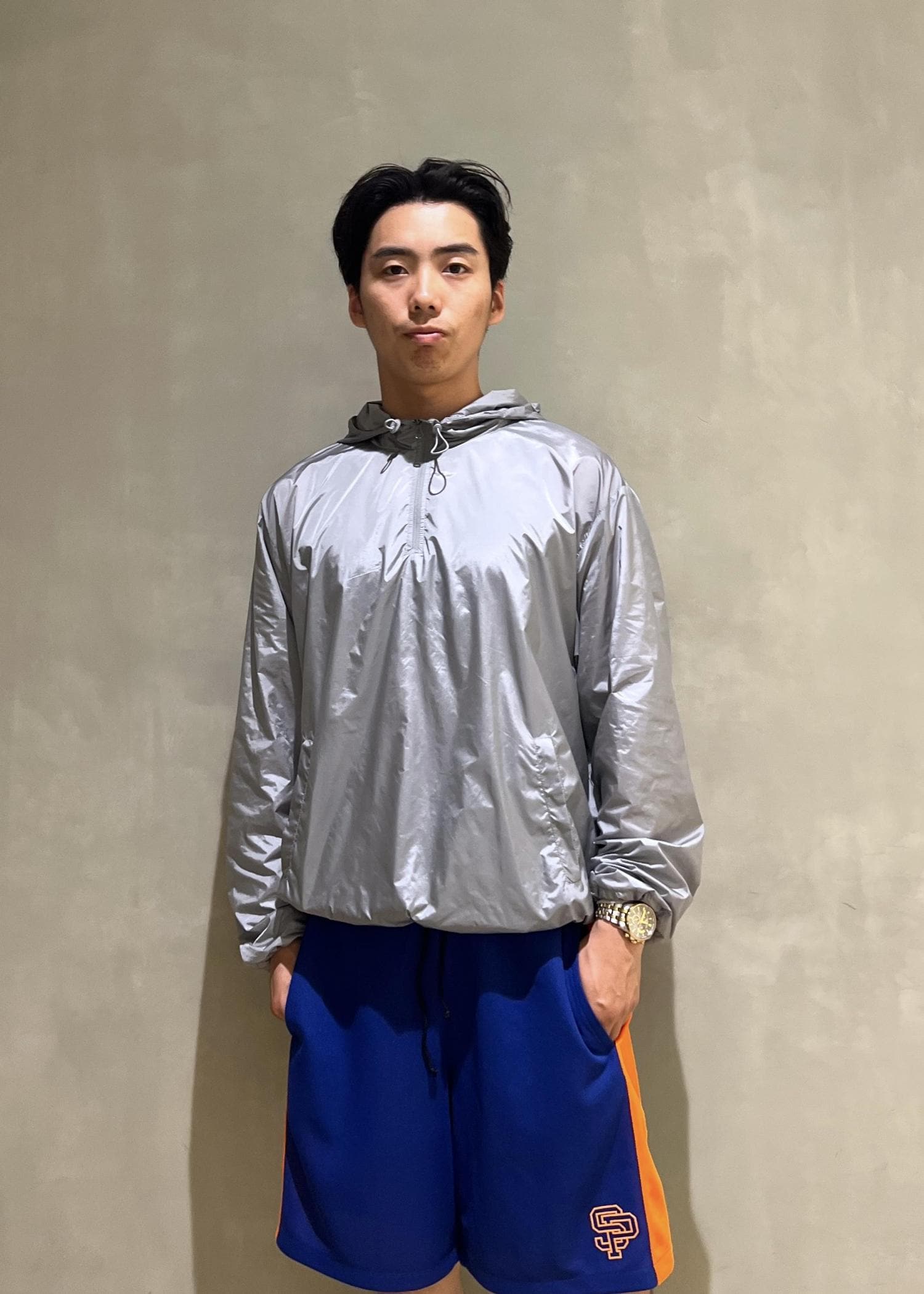 ADAM ET ROPÉ HOMME【AMOMENTO/アモーメント】 GLOSSY NYLON HALF ZIP-UP JUMPERブルー系 / M¥12,650