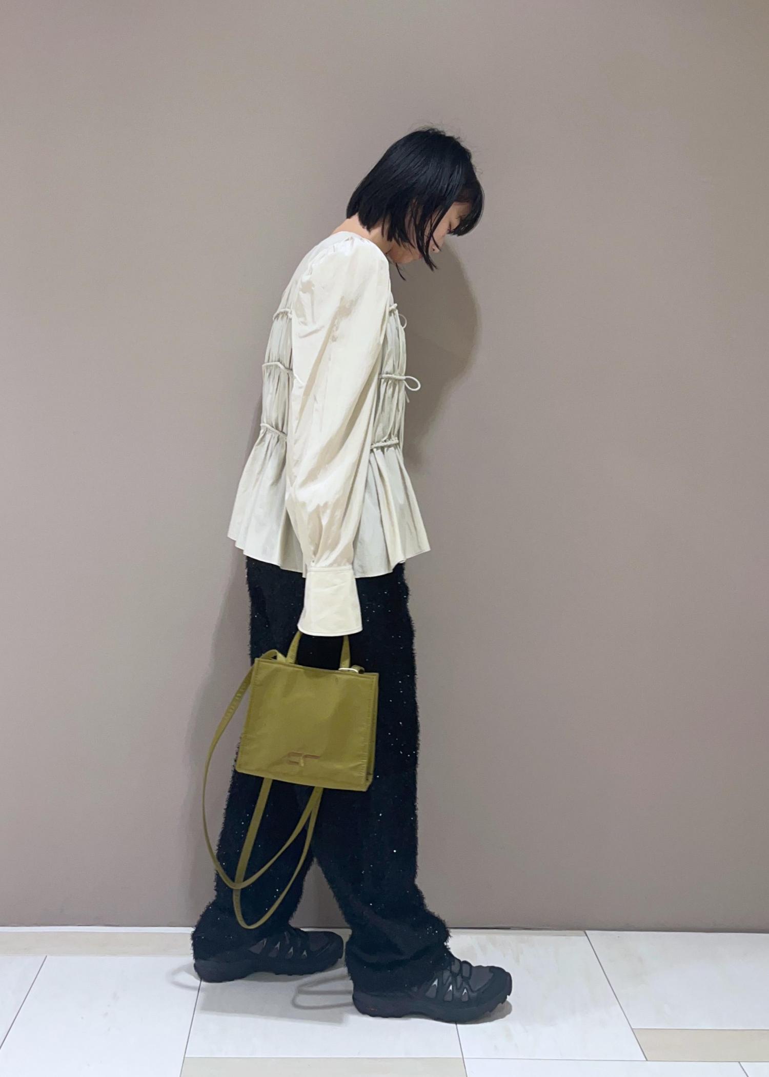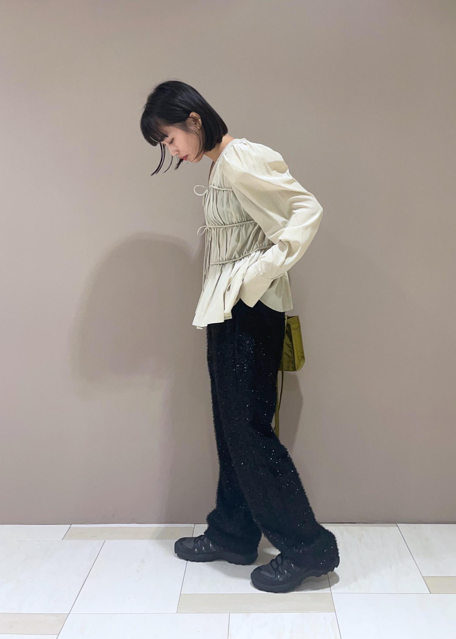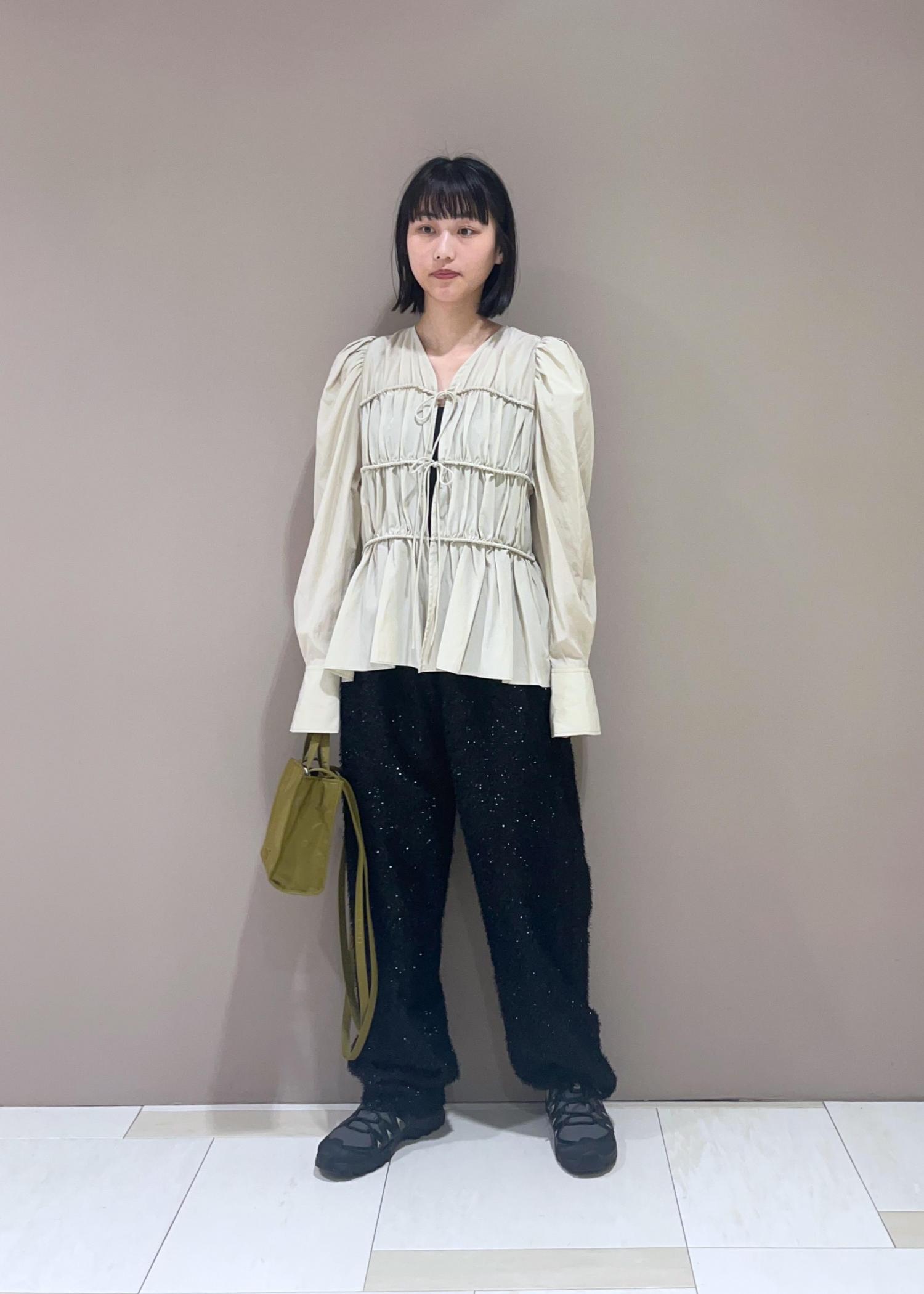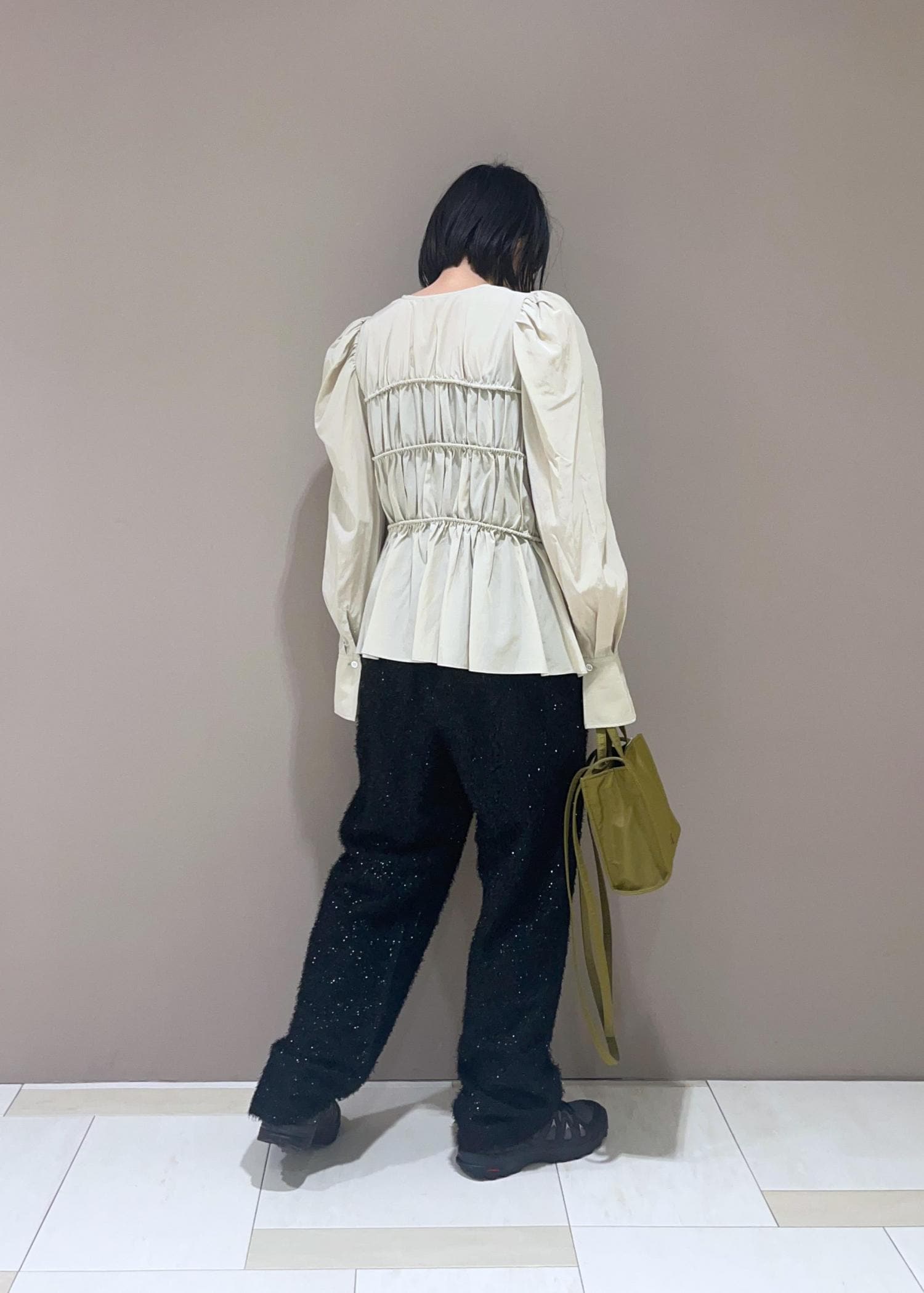 本日はウエストシェイプギャザーシャツを着用致しました。