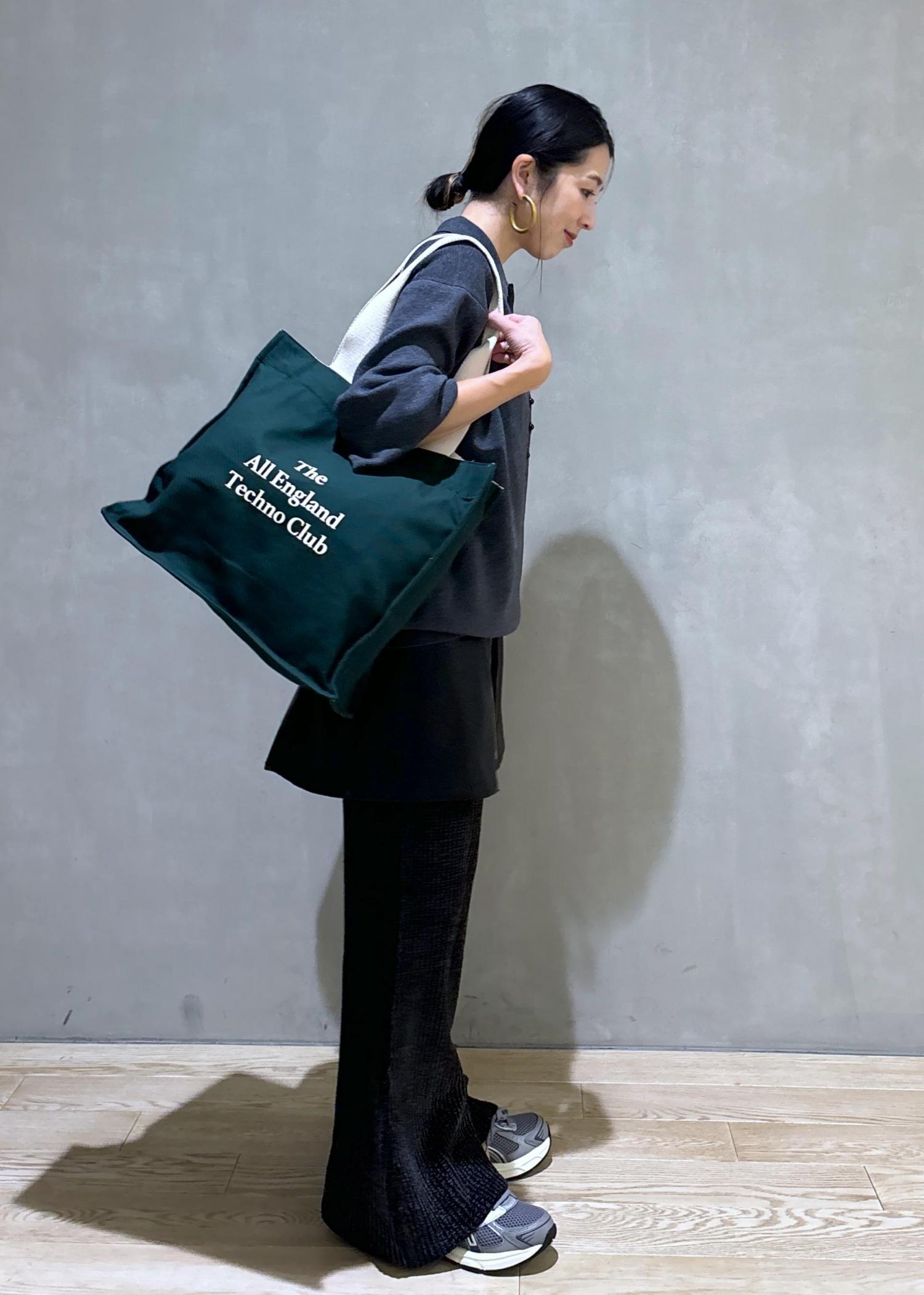 そちらにニットパンツを合わせたのですが、ニットとニットの組み合わせが野暮ったくなりそうだったので、レザースカートをアクセントに巻いてみました!