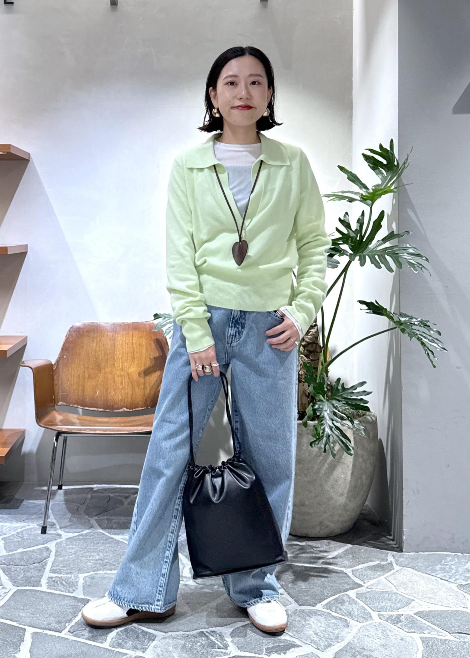 肩掛けにしたモヘアニットは、レイヤードして着ても可愛いです♡