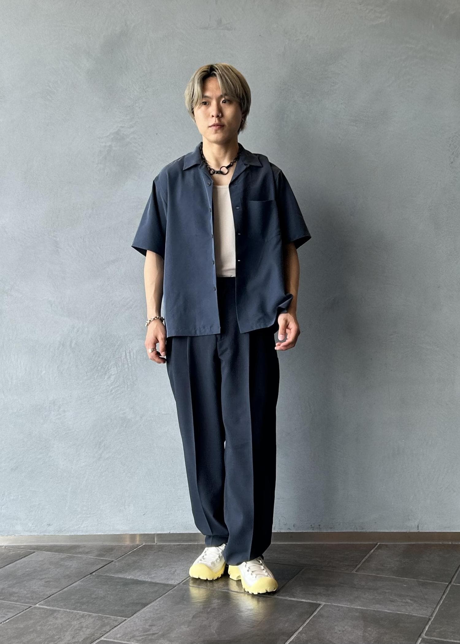 リサイクルウールとポリエステル混合で、しなやかで程よくハリがあります。上品な印象で綺麗めのスタイリングにはもちろんですが、かなり軽くて着やすいのでデイリー使いにもおすすめです。