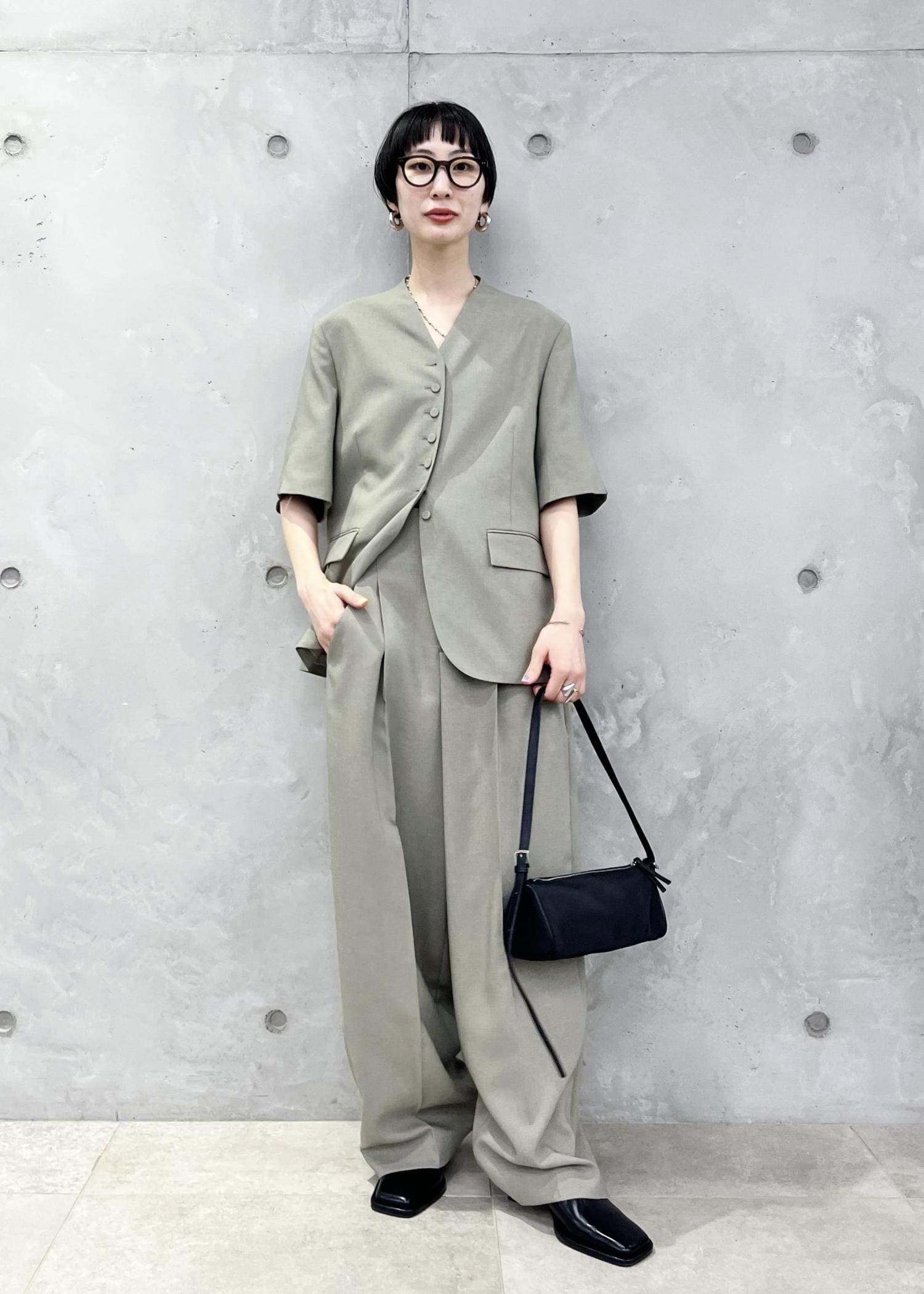 羽織りとキャミソールは同素材のウールmixシリーズ。