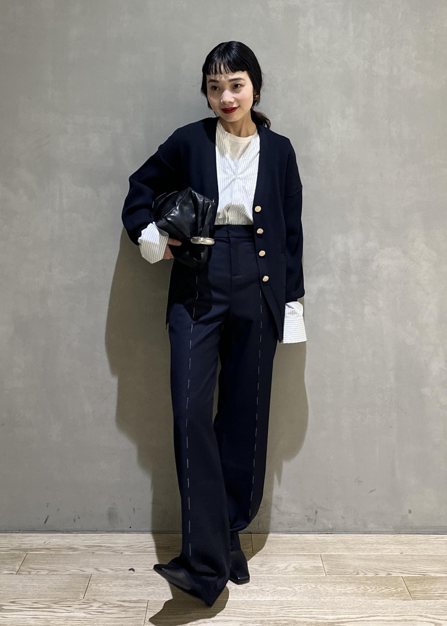 オールインワン自体がウールのきれいめな素材感なので、そこまでテイストがカジュアルなアイテムで合わせてもカジュアルダウンしすぎないので、おすすめですよ!