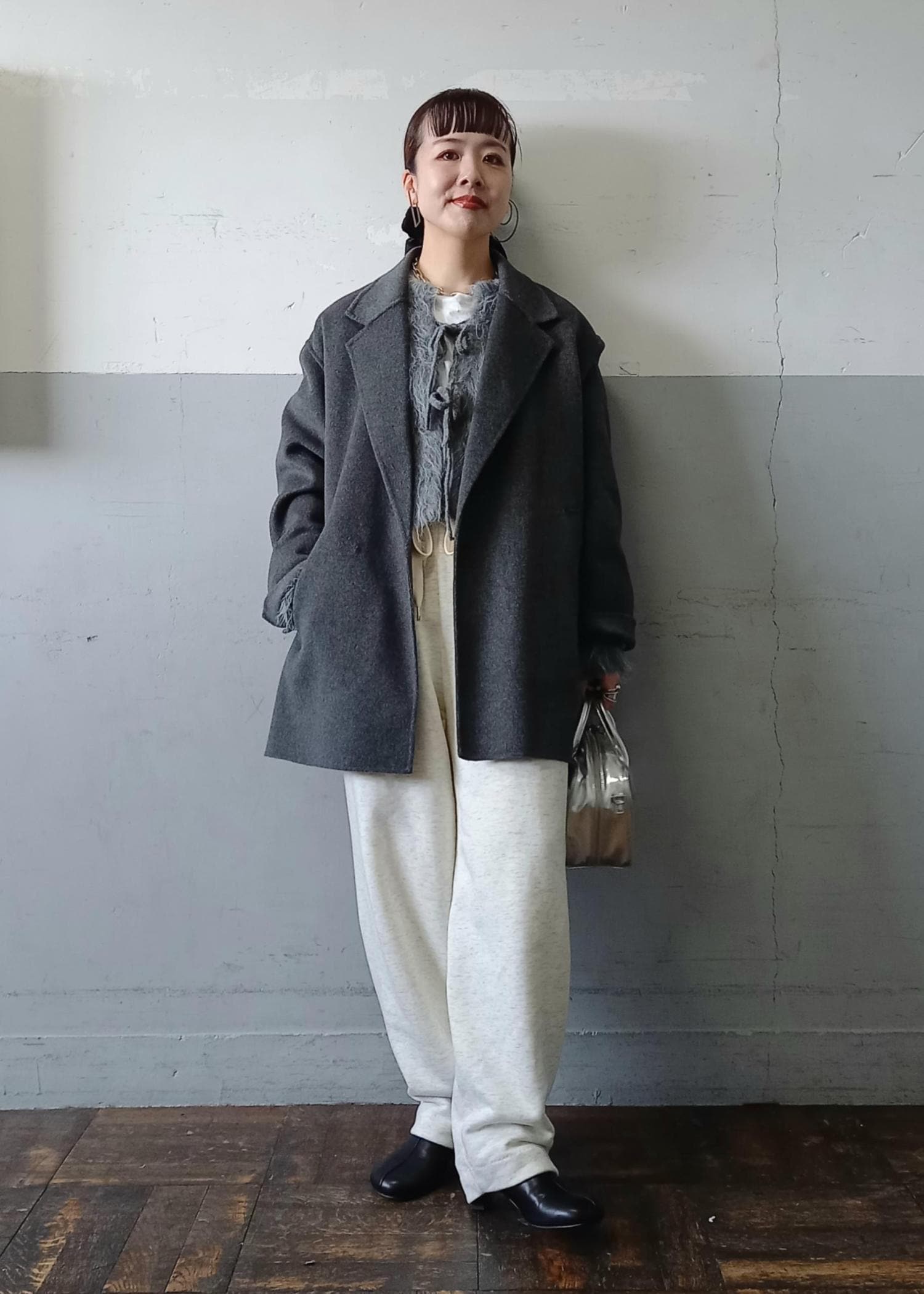 肉厚のウールボンディング素材ですが羽織るととても軽くて暖かい生地です◎