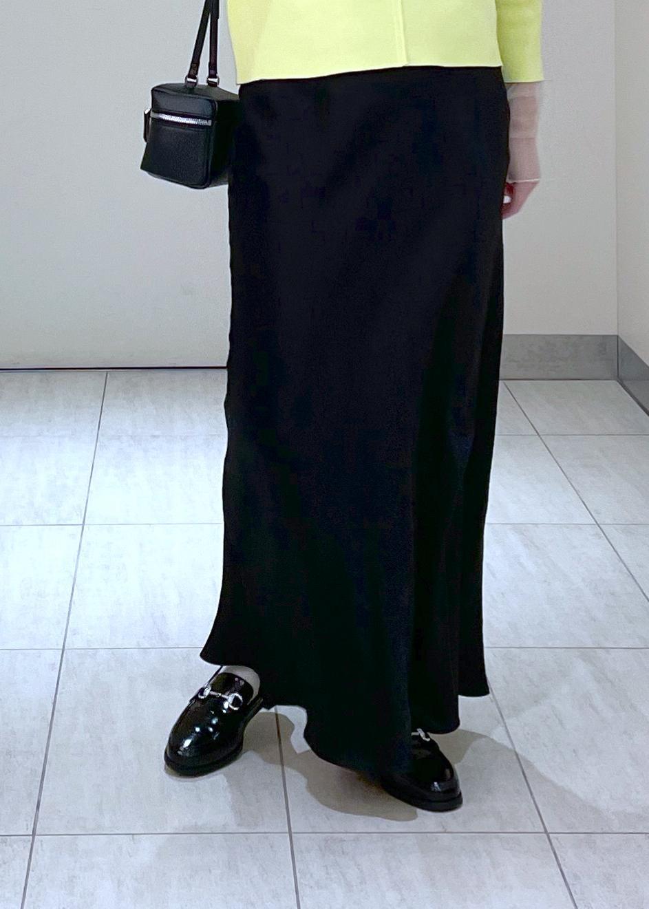 適度な厚みのあるサテン生地で、華奢すぎず、色々なスタイルに合わせやすいです。