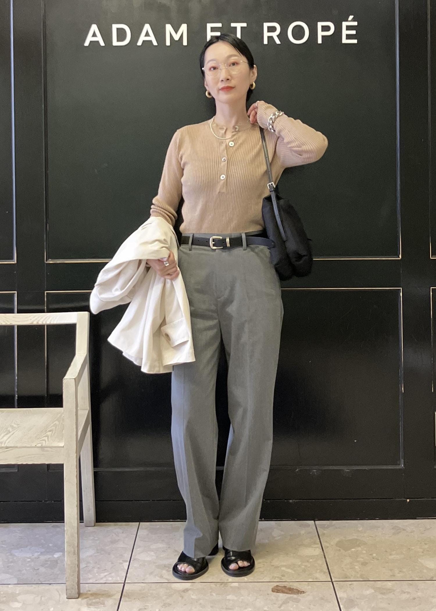 特に、タイトシルエットなボトムスの時にとっても活躍します。サテンのマーメイドスカートは体のラインが出やすい(それが良いところなんですが)ので、お尻まで隠れるボマージャケットはボリューム感もあってバランスよく仕上がるのでオススメです。冬場はアウターのインナーとして、秋、春はアウターとして使えるのでとっても万能ですよ!