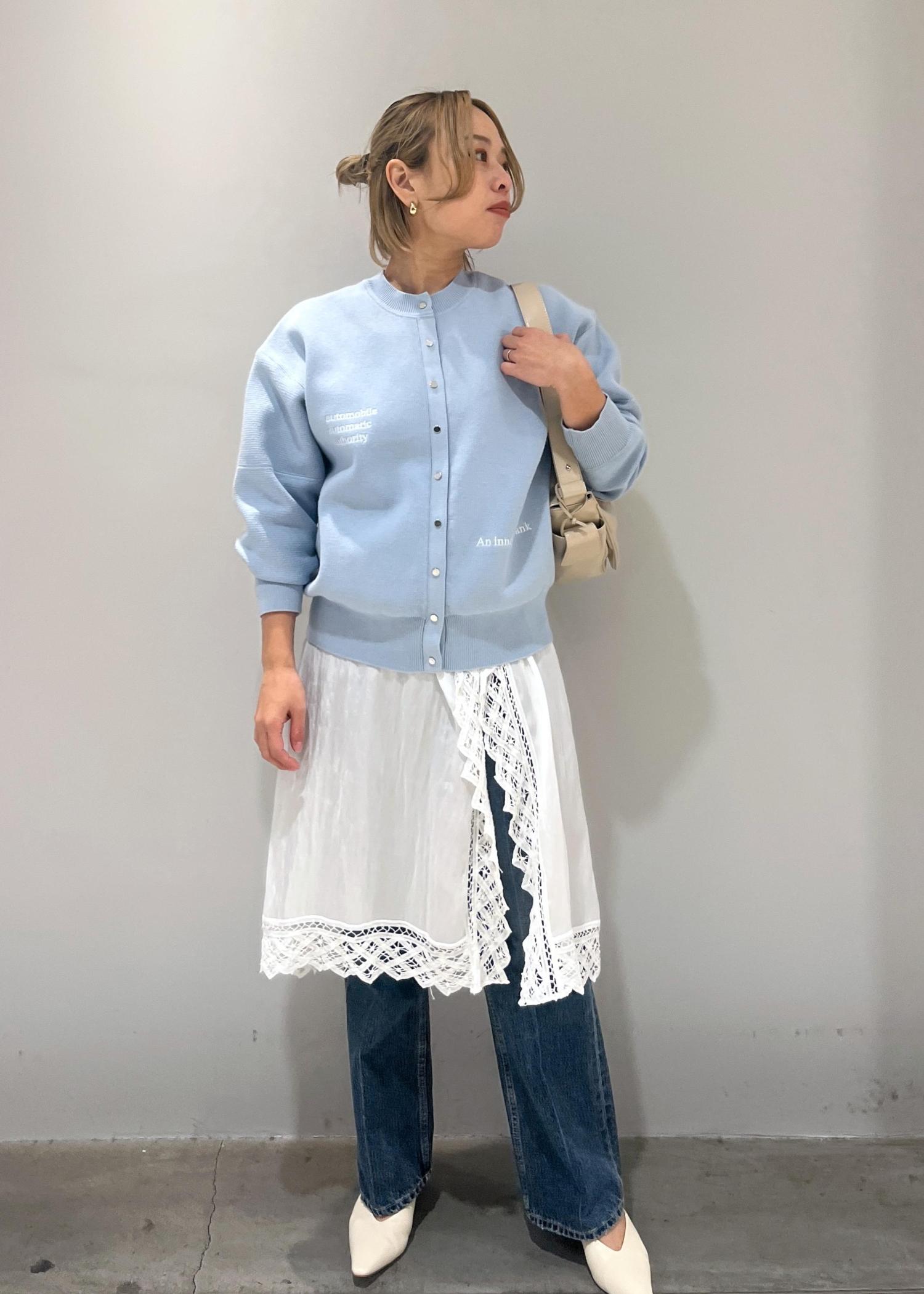 こちらのトップスはカーディガンとして使えるだけでも十分ですが、なんと前後だなちらでも着用でき、プルオーバー風にもなるんです!!