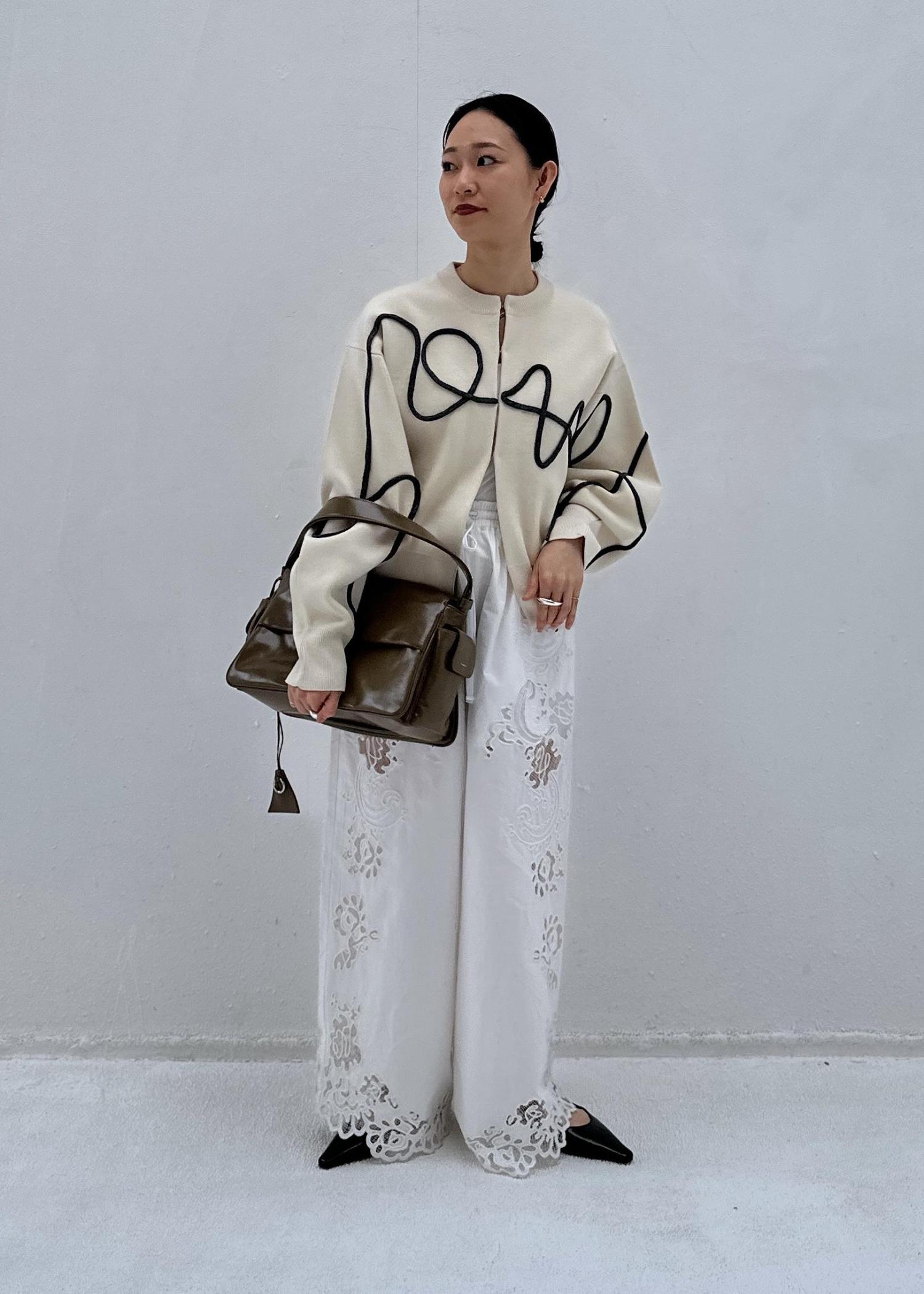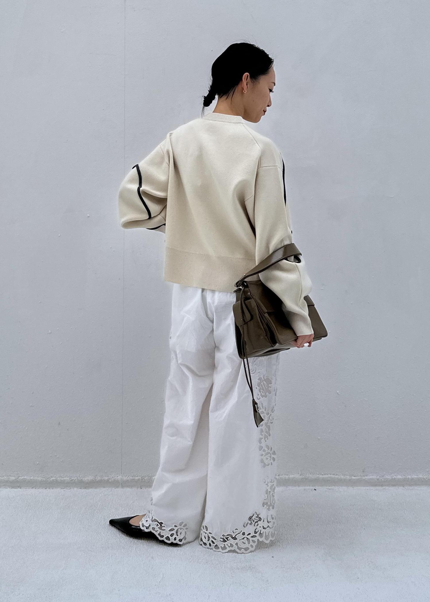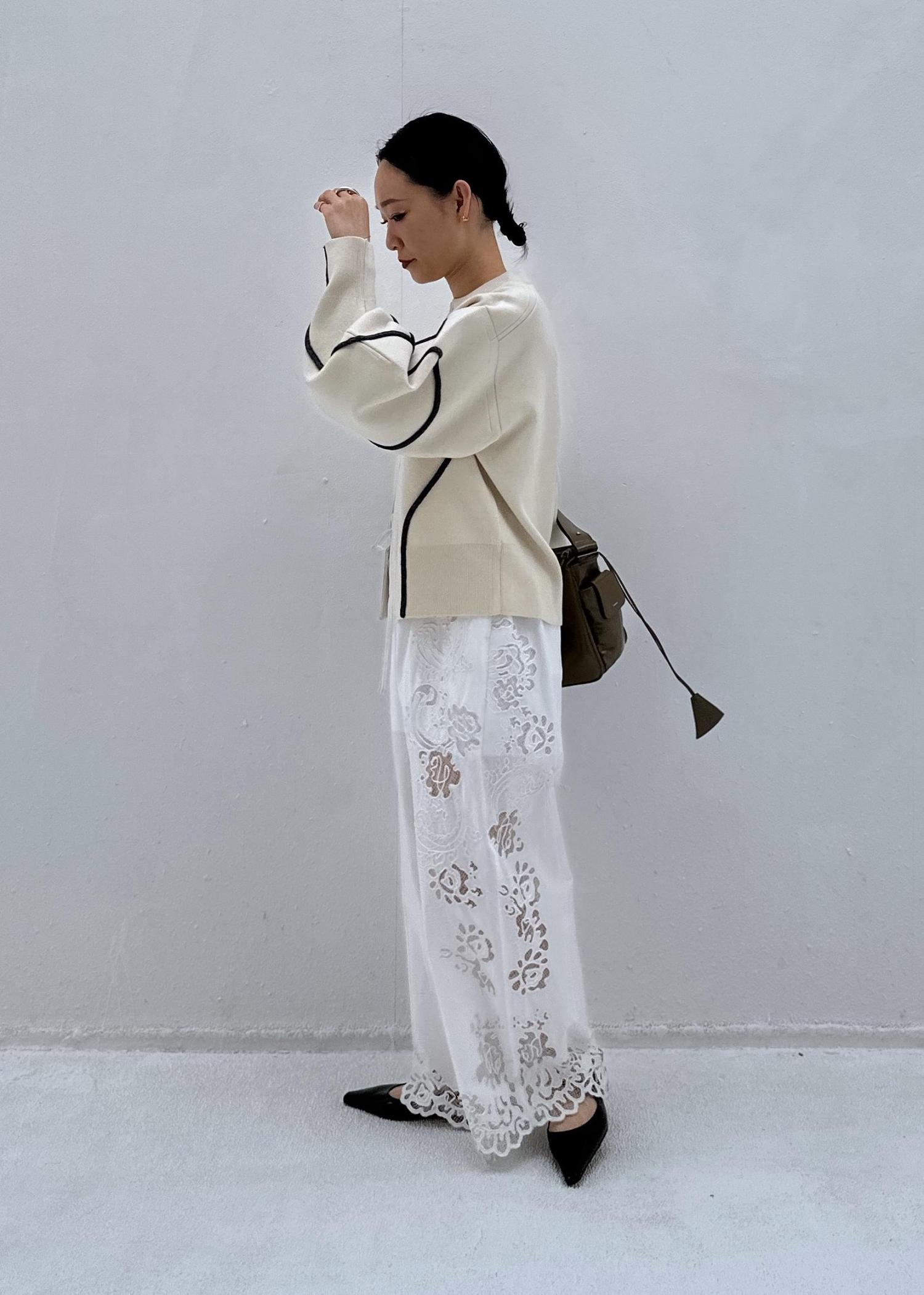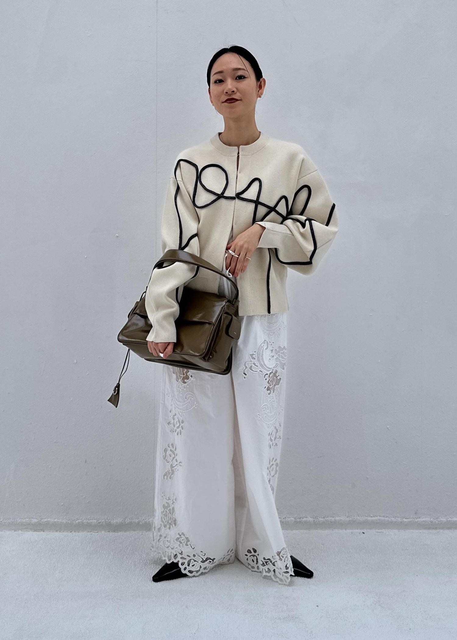 ADAM ET ROPÉ FEMME【サステナブル】ラインアートカーディガンキナリ / F¥16,500レビューアートラインカーディガン!