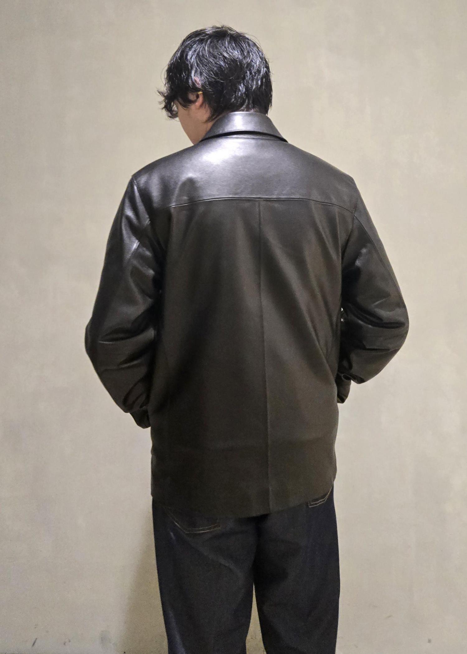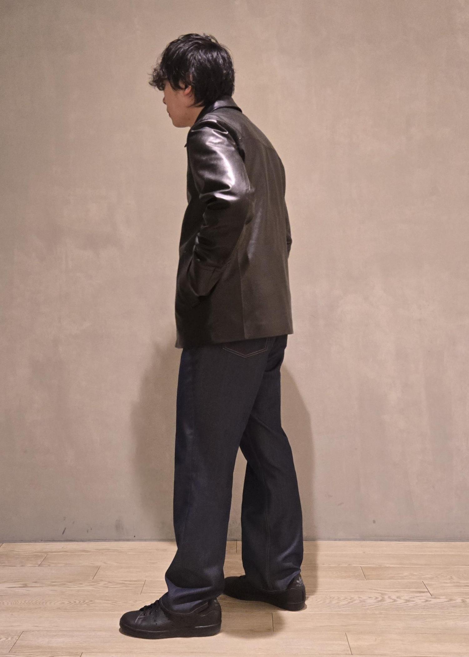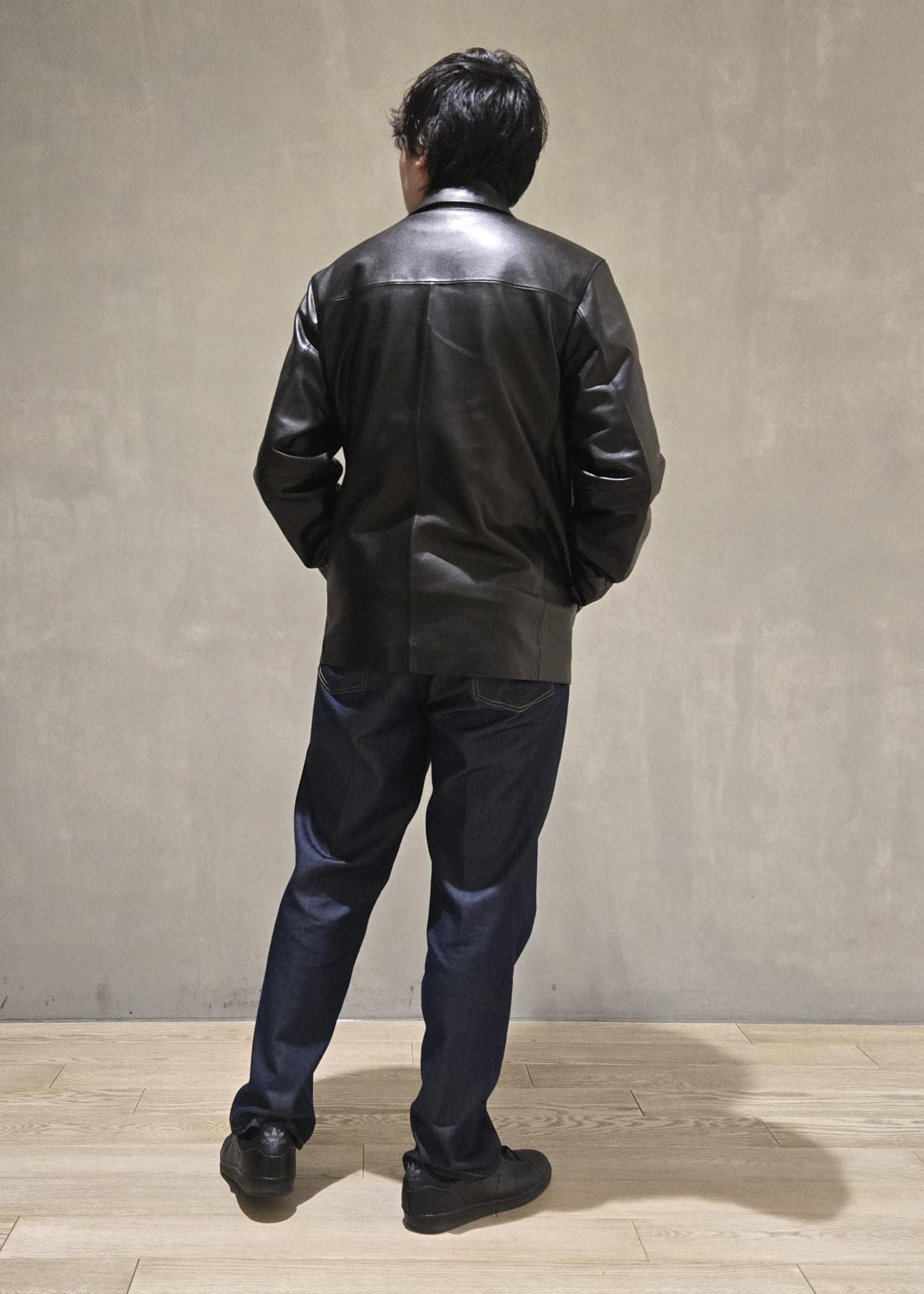デザインの特徴としては、ステッチレスで袖口も無飾りにしており、男臭いハードな印象あるレザーをモードアイテムとも相性良くまとまる様にしております。