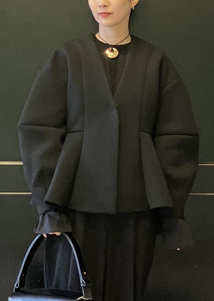 ADAM ET ROPÉ FEMME【洗える】エッグブローチ付きペプラムカーディガンブラック / F¥17,930レビュー少し厚みのある羽織りなので、春あたたかく過ごしていただけますよ!