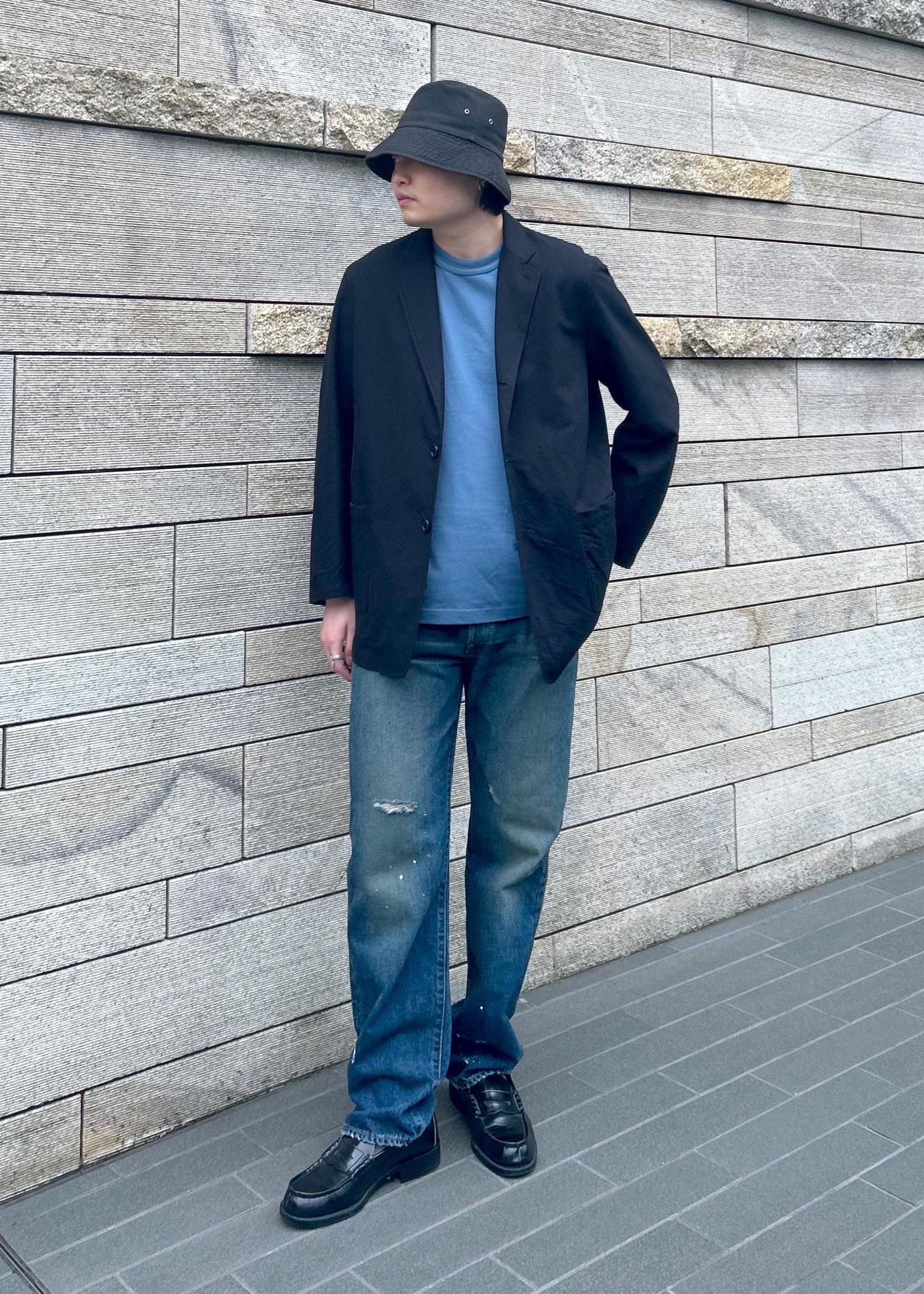 自分は178cmで普段だとLサイズを着用することが多いのですが、着丈短めがお好みの方はワンサイズ落としてMサイズでもお召しいただけるかと思います。