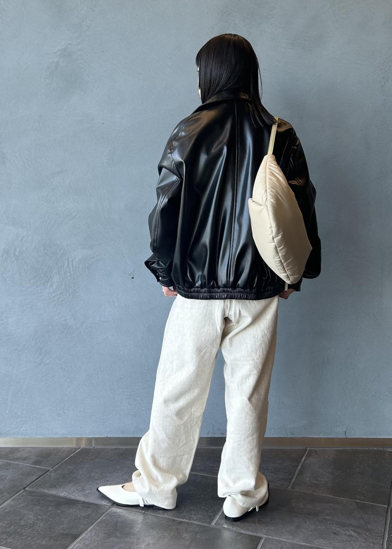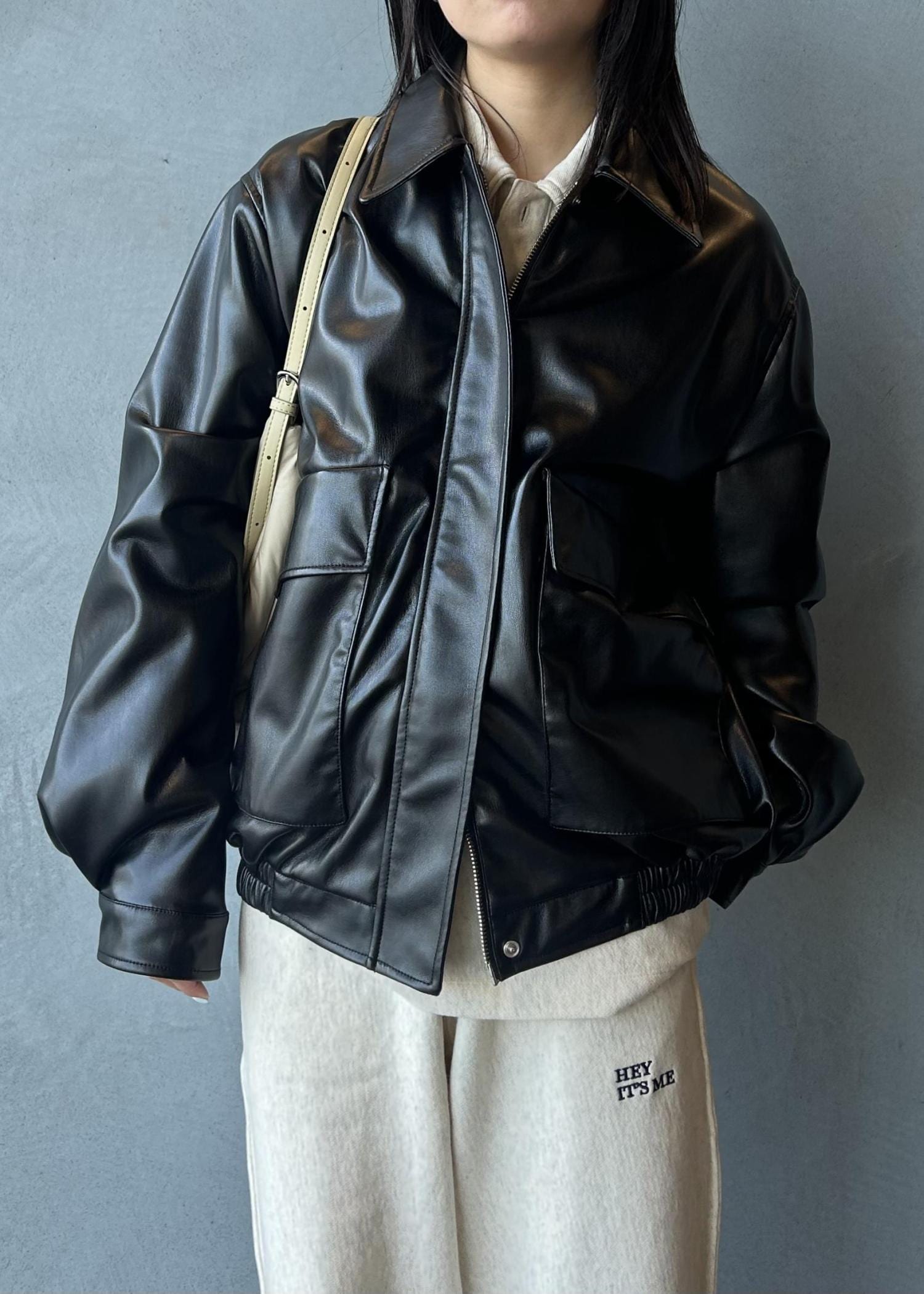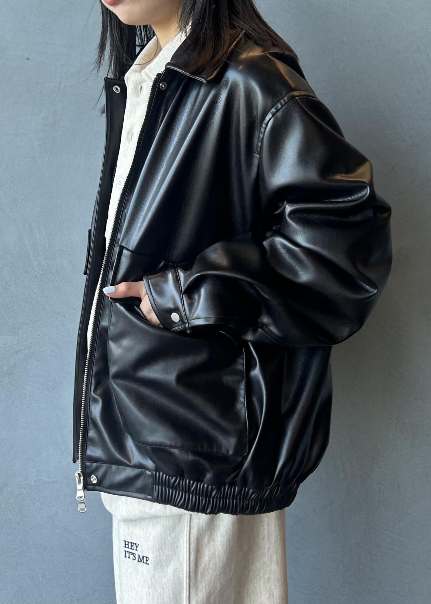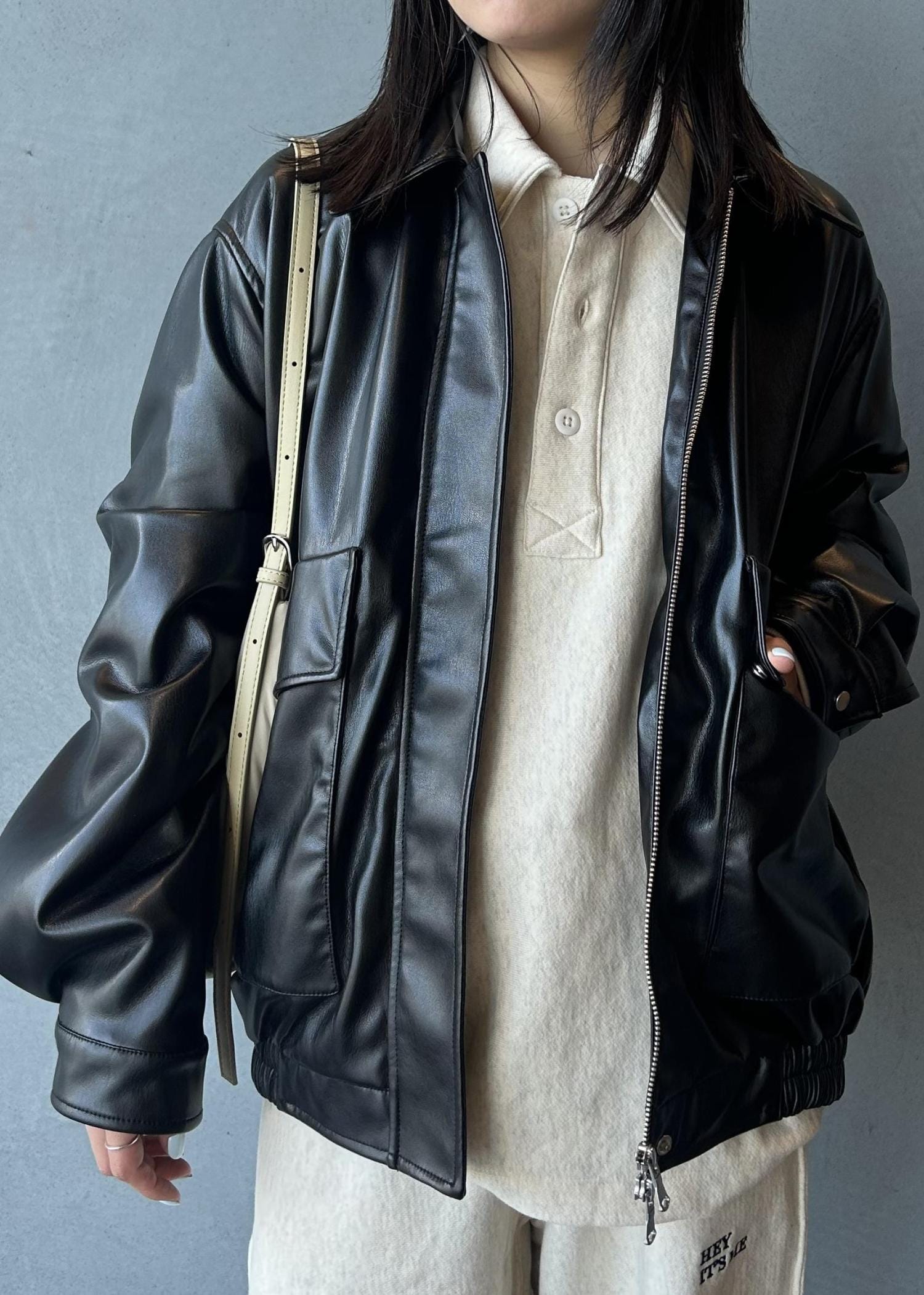 しなやかで軽量な合成皮革で、ハードすぎずほどよくクリーンな印象のブルゾン。やや丸みのあるシルエットも、無骨すぎずフェミニンな雰囲気になります。