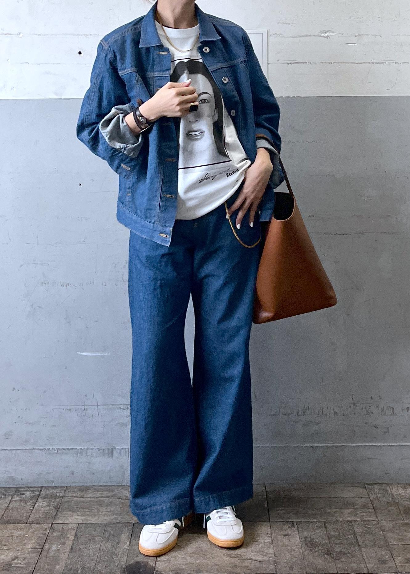 あと、推しポイントはこのカラー。セットアップで着てもカジュアルになり過ぎず、デニムパンツもダメージ無しでクリーンで上品です!デニムのセットアップに挑戦したい方にも取り入れやすいデザインですよ!是非お試しくださいね♪