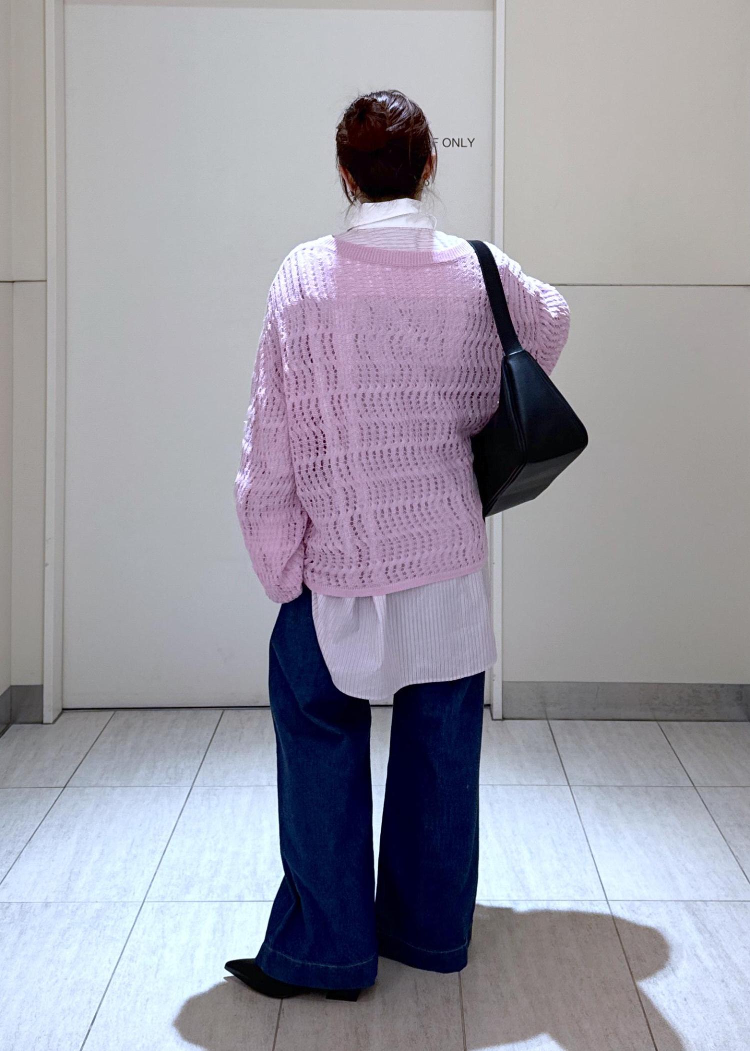透かしアイテムは体のラインが出てくれるので骨格ストレートさんに是非!私も厚みのあるニットやスウェットは着膨れして見えてしまいますが透け感のあるタイプだと着痩せして見えます。