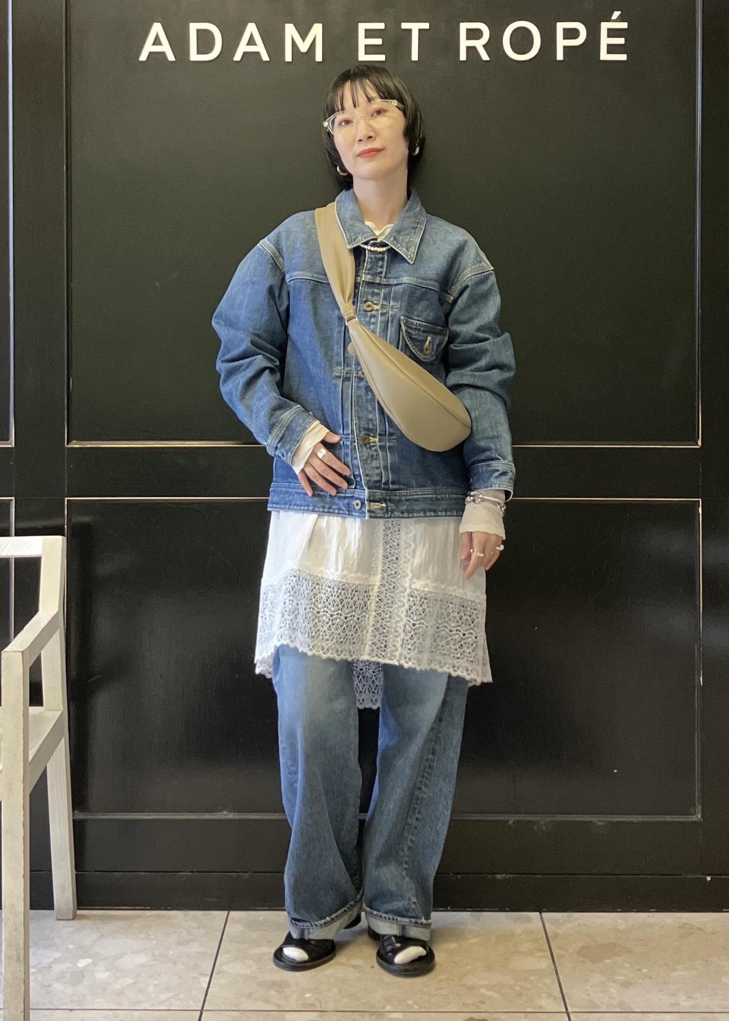 しっかりヒップもカバーしてくれるので細身パンツやタイトスカートと合わせるとメリハリが出て好相性。