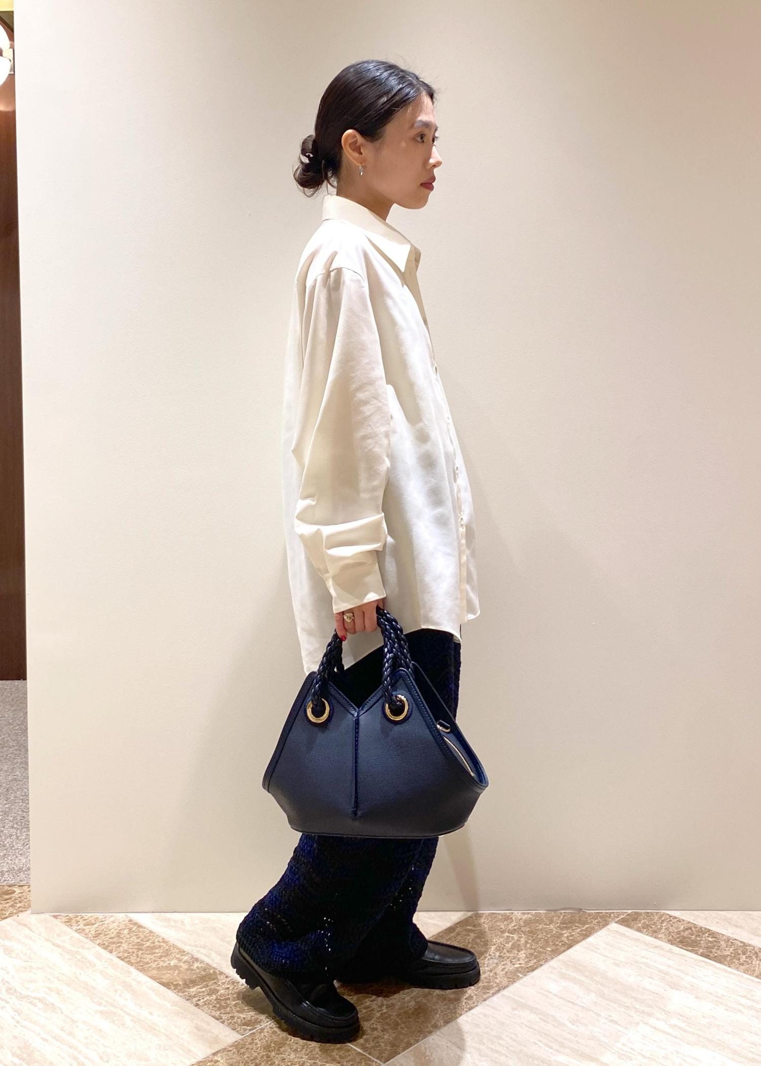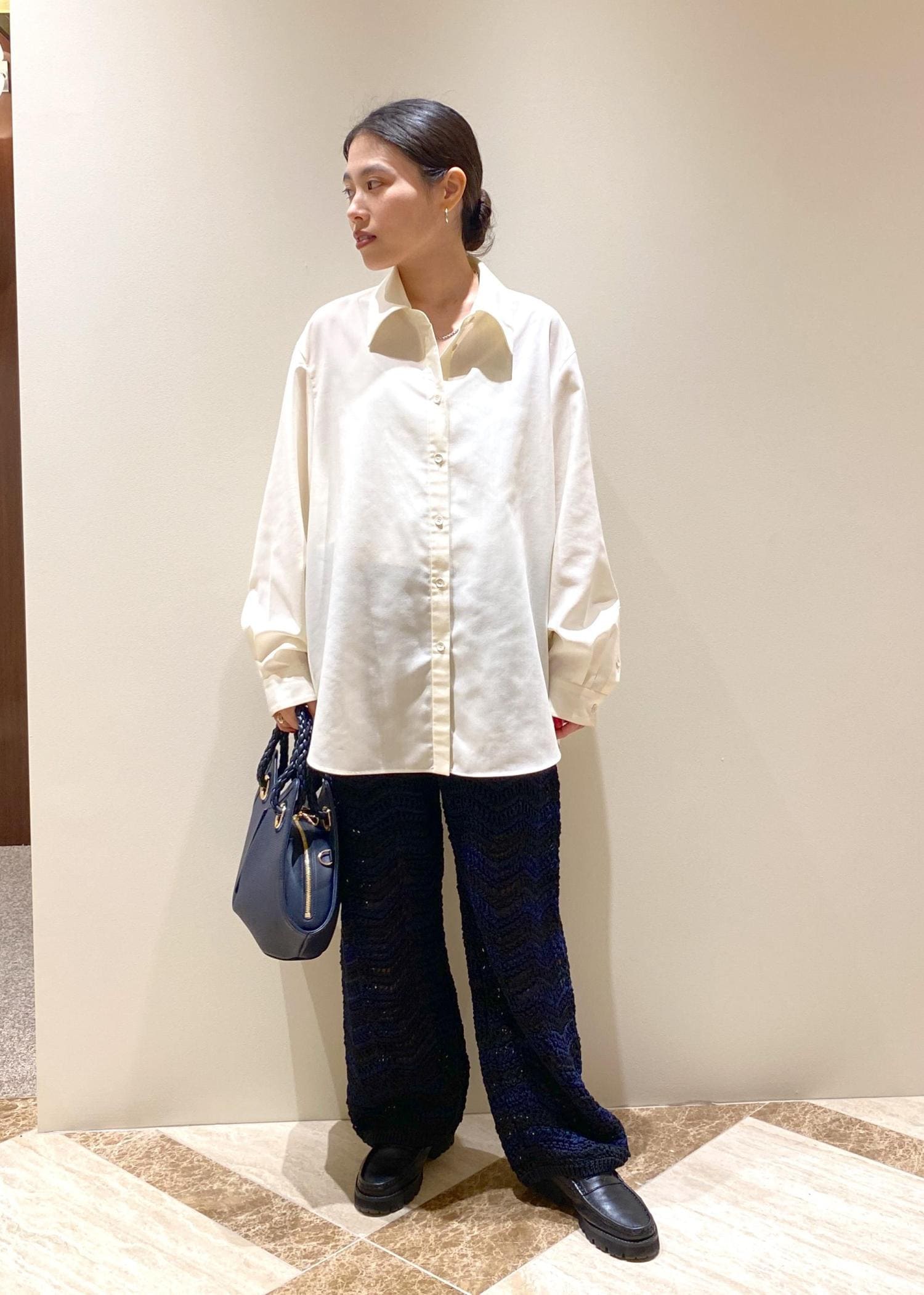 パンツとバッグのカラーを合わせてスタイリングしてみました。