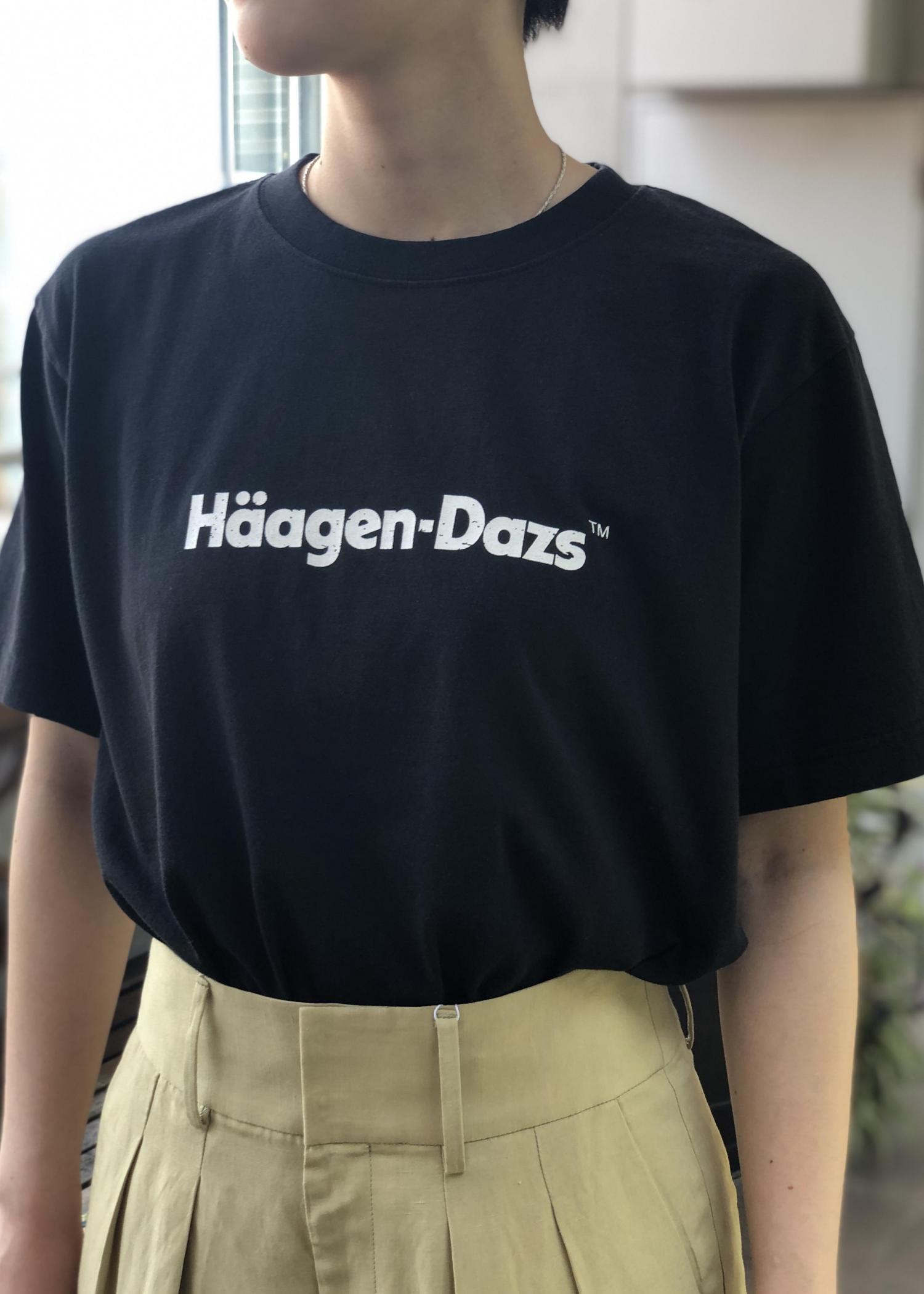 今年もハーゲンダッツとのコラボTシャツが 入荷いたしました! 過去のスタッフユニフォームをデザインベースに ハーゲンダッツのロゴとフレーバーがプリントしてあるなんとも可愛いTシャツです。 シンプルなパンツスタイルに、 ポイントとして色合いが可愛いバッグをあわせてみました! 同柄のキャップや、メンズサイズも取り揃えてますので是非WEBでもご覧下さい。