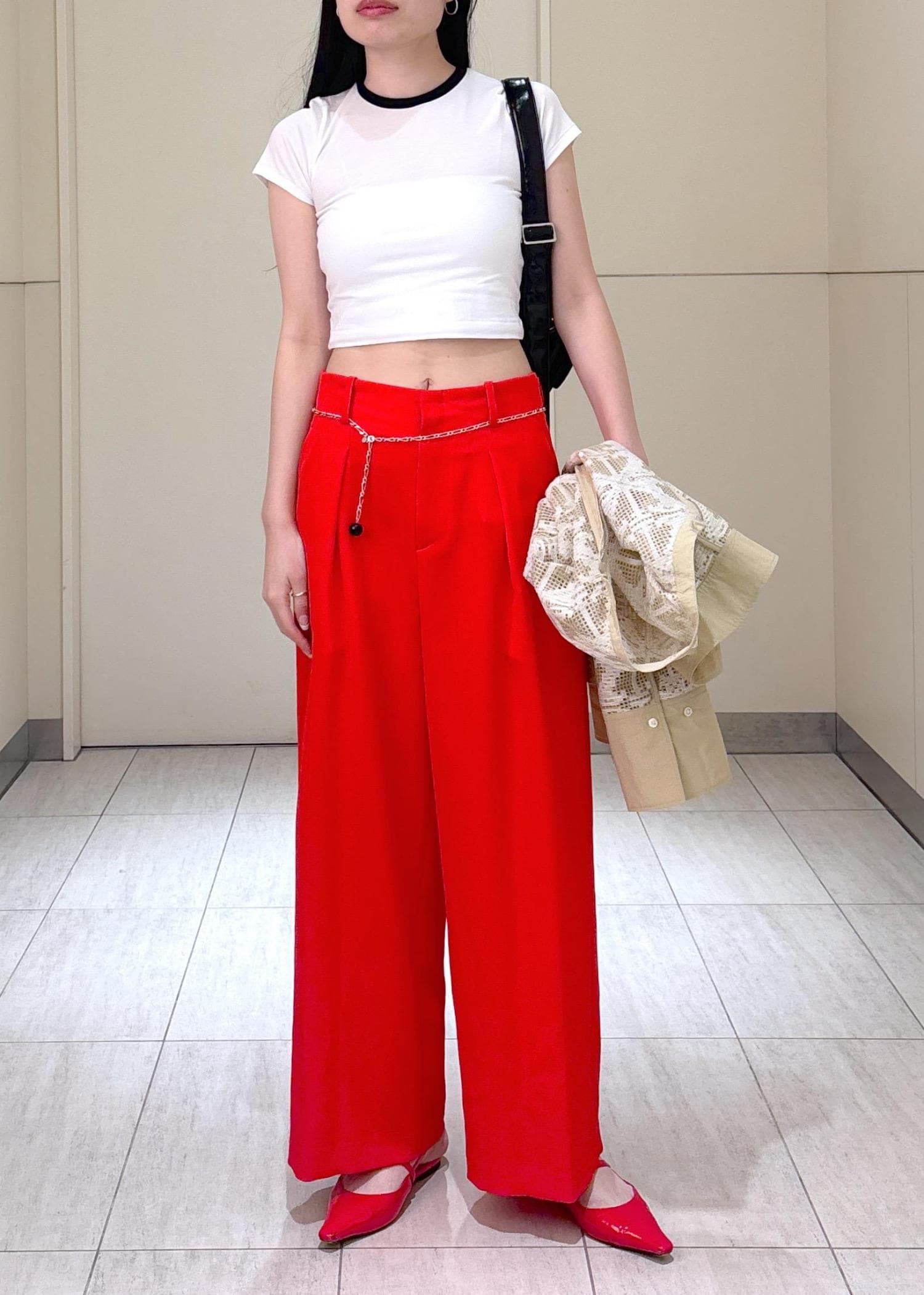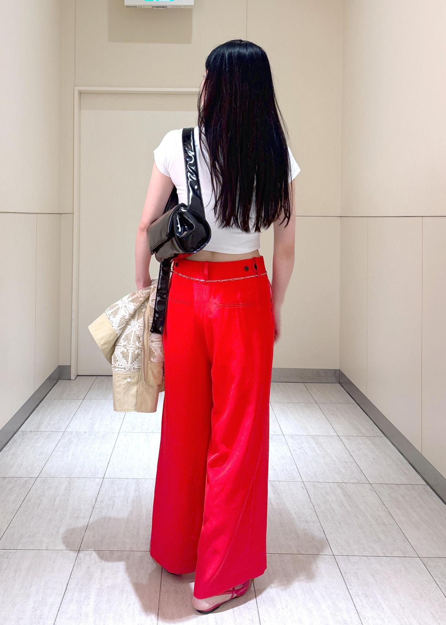 私は今回コーディネートの差し色になるレッドを着用しましたが、その他にも使いやすいベージュ・ブラックもご用意してます!履き心地抜群なので、サイズ感等ぜひお試しください。