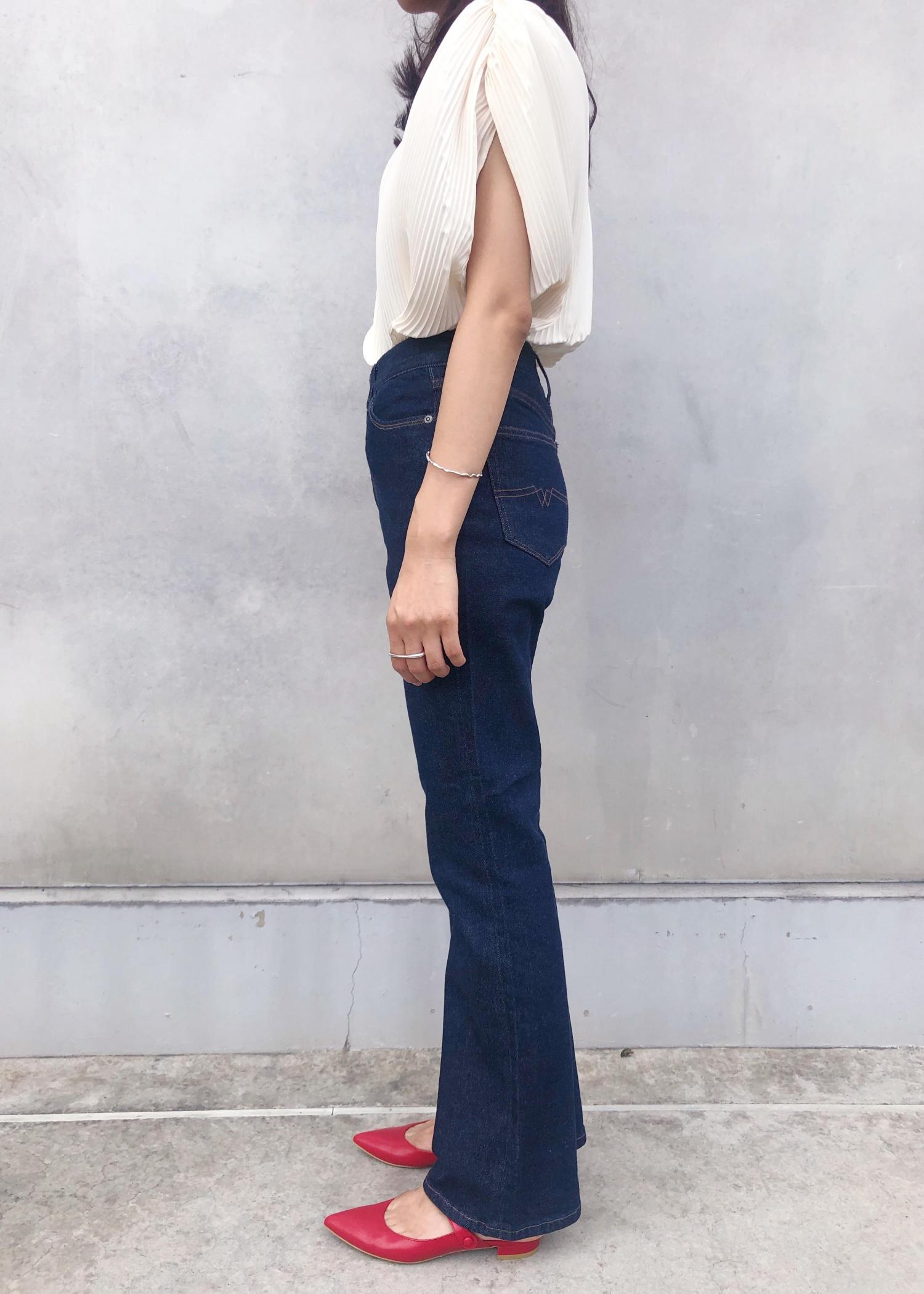 裾がフレアなっている美シルエットなデニムなので、トップスインで着て頂いても素敵です◎