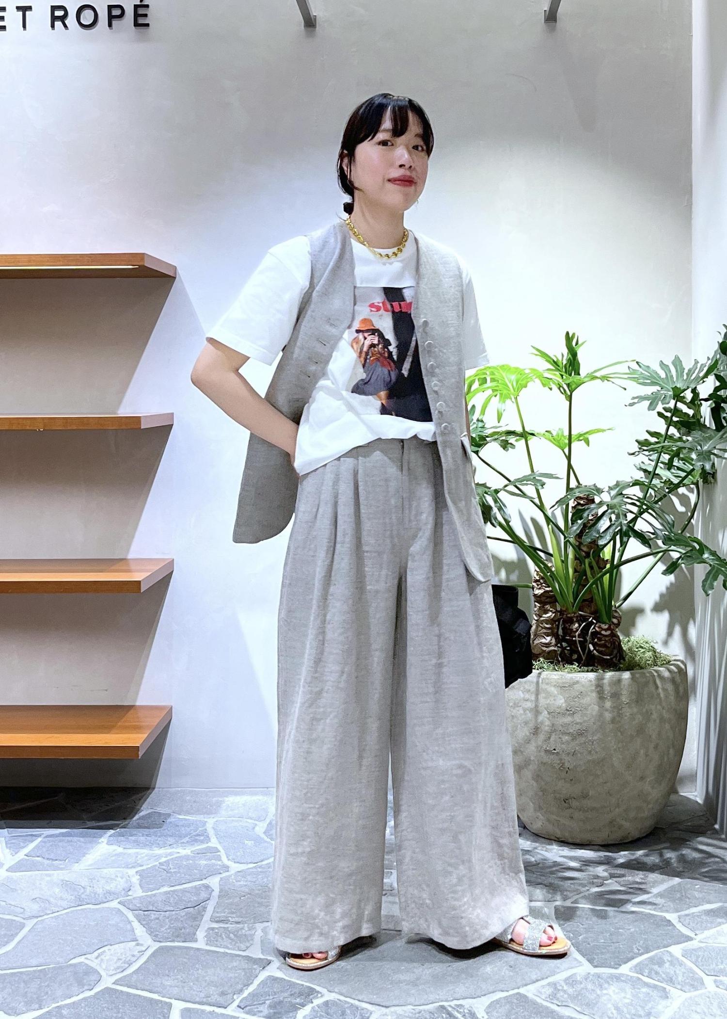 リネンジレ×パンツのセットアップに、ご好評頂いてるstudy Tのレイヤードしました!