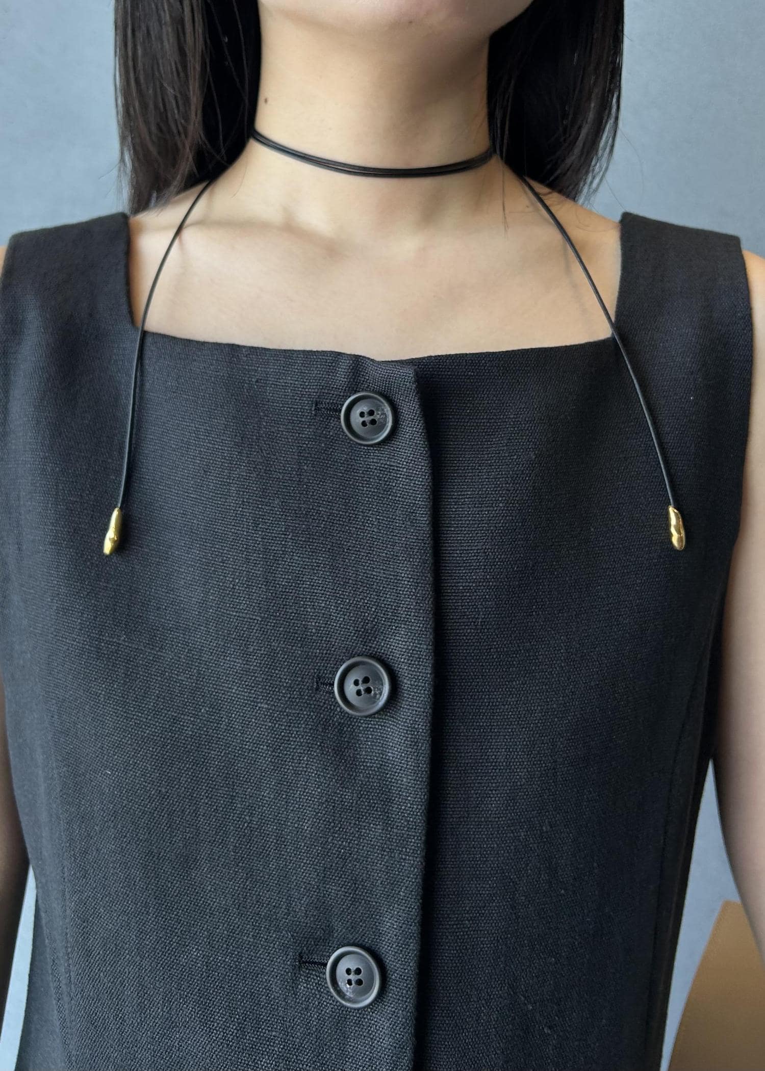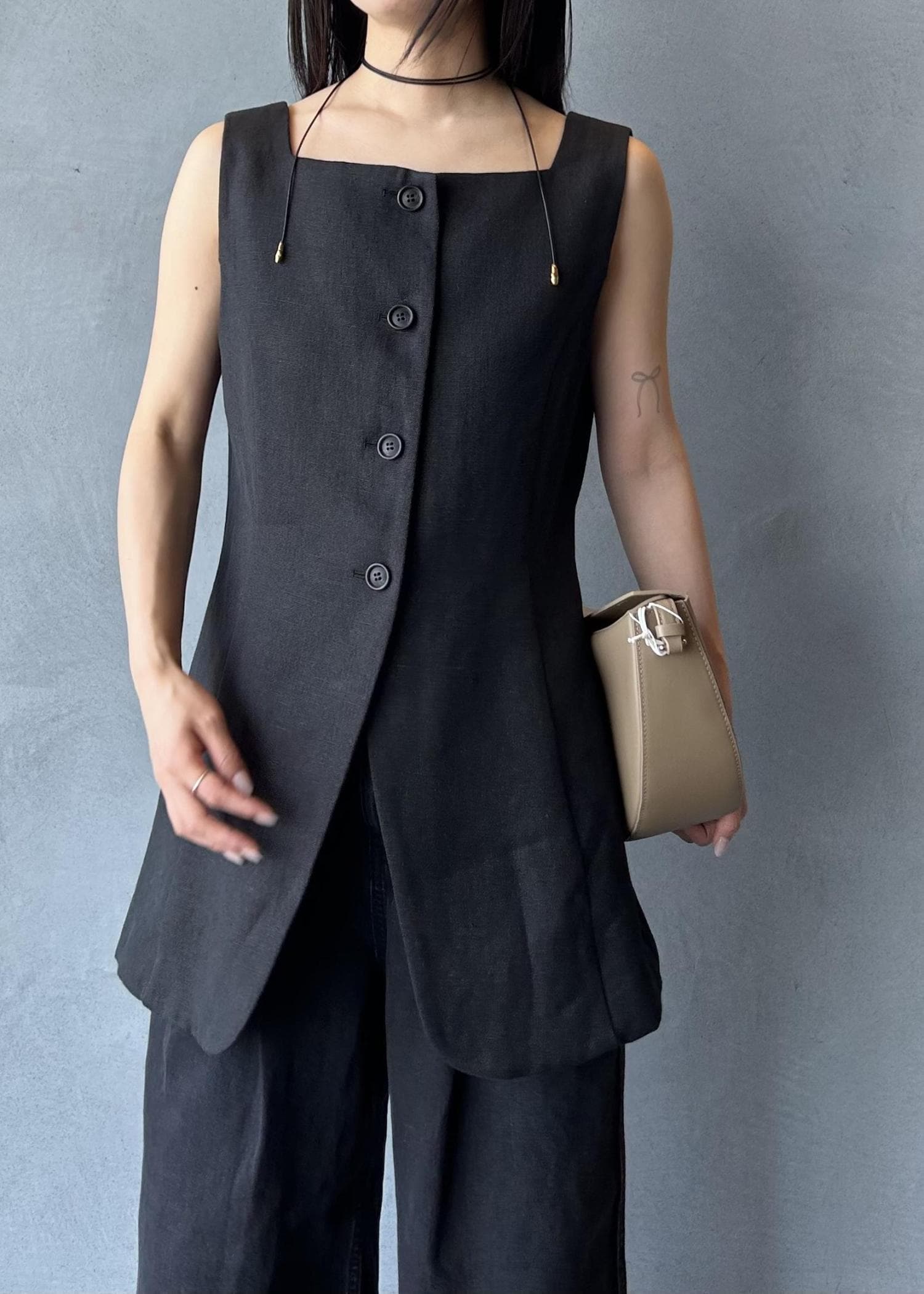 EMOELLE【EMOELLE】スクエアネックジレトップスブラック / F¥29,700レビュー程よいハリのある素材で上品です。ウエストが少しくびれており、スタイル良く見えます。