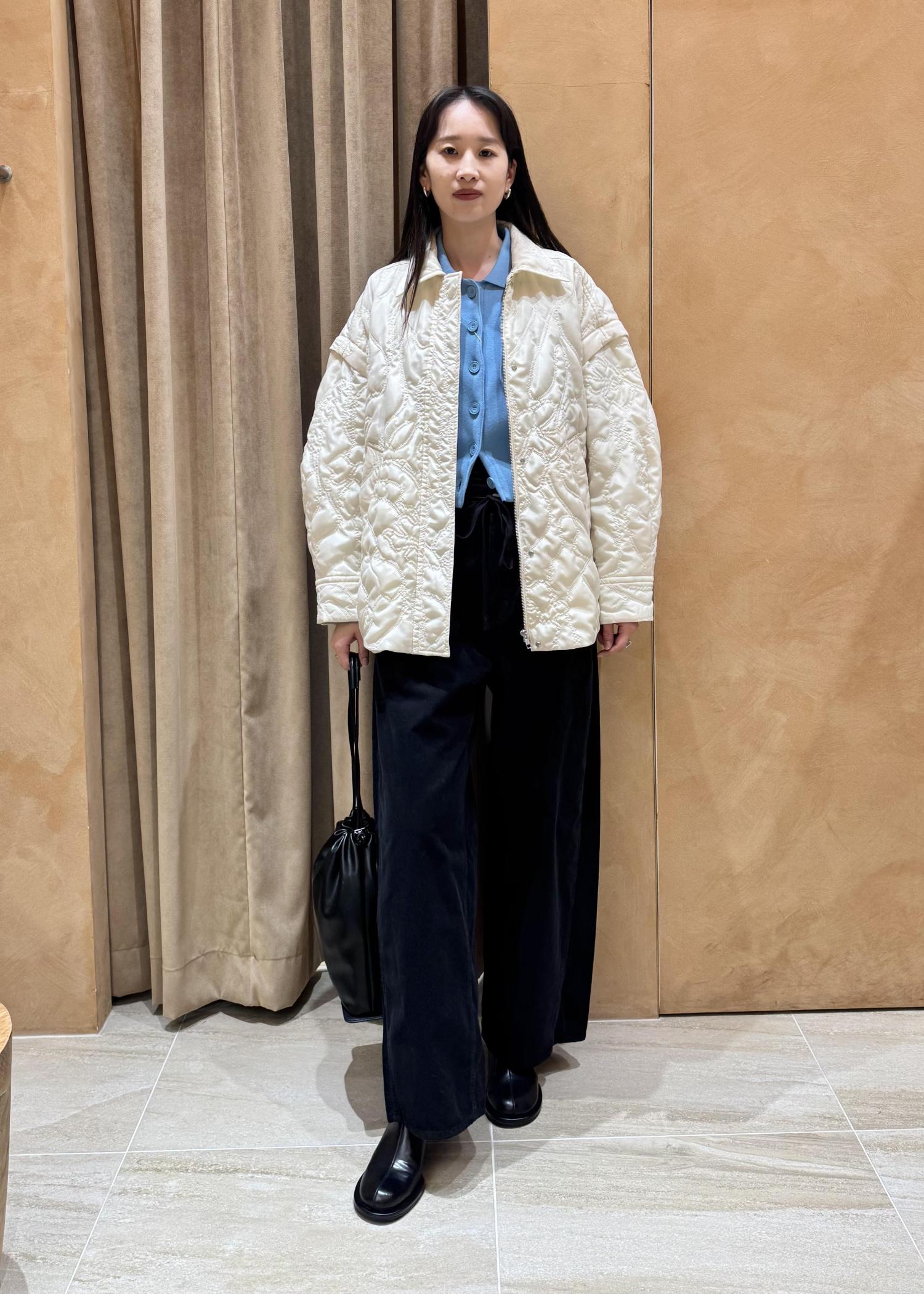 今回はキャプラ同士の素材でスタイリングを組んでみましたが、デニムなどのカジュアルイメージのボトム合わせも素敵です。