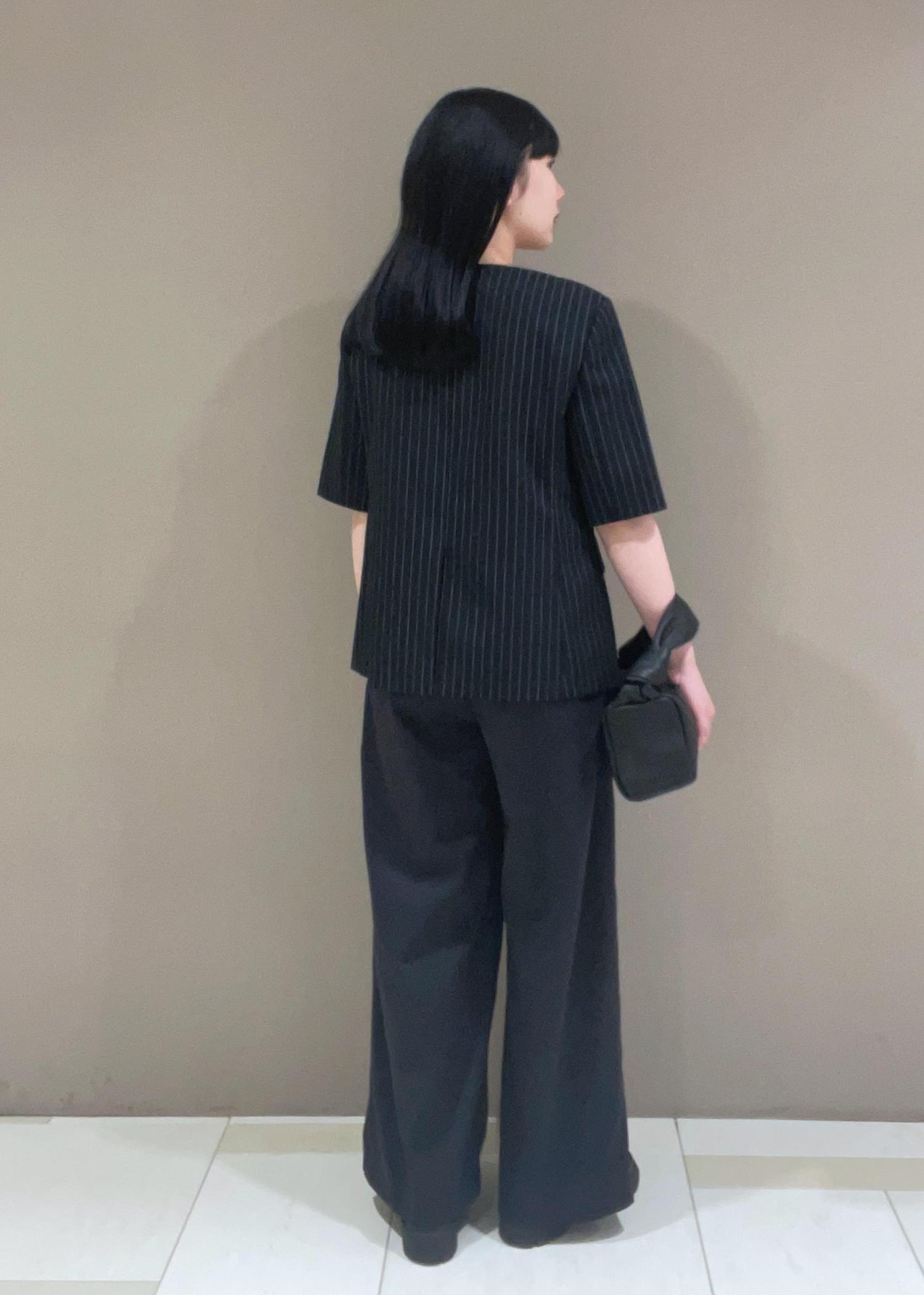 スリットネックハーフスリーブジャケットを使用した、オールブラックコーデをご紹介します!