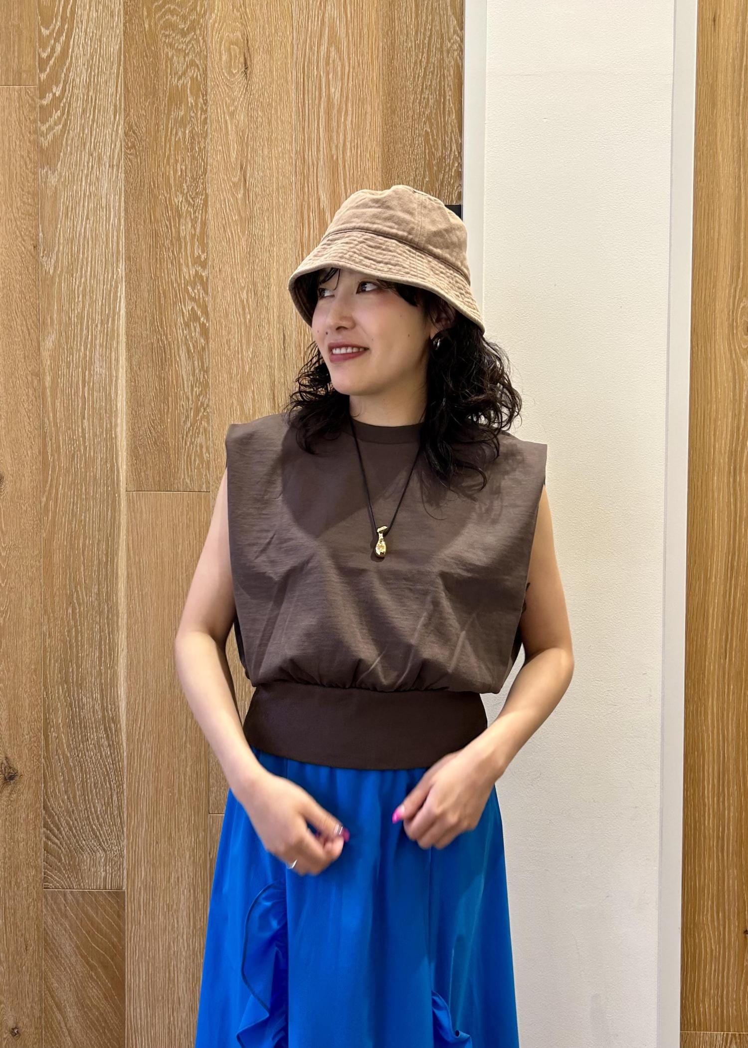 アウトレットEMOELLE【EMOELLE】・【サステナブル】スリーブレスタックプルオーバーブラウン / F¥5,720レビューどんなボトムにも合わせやすい、