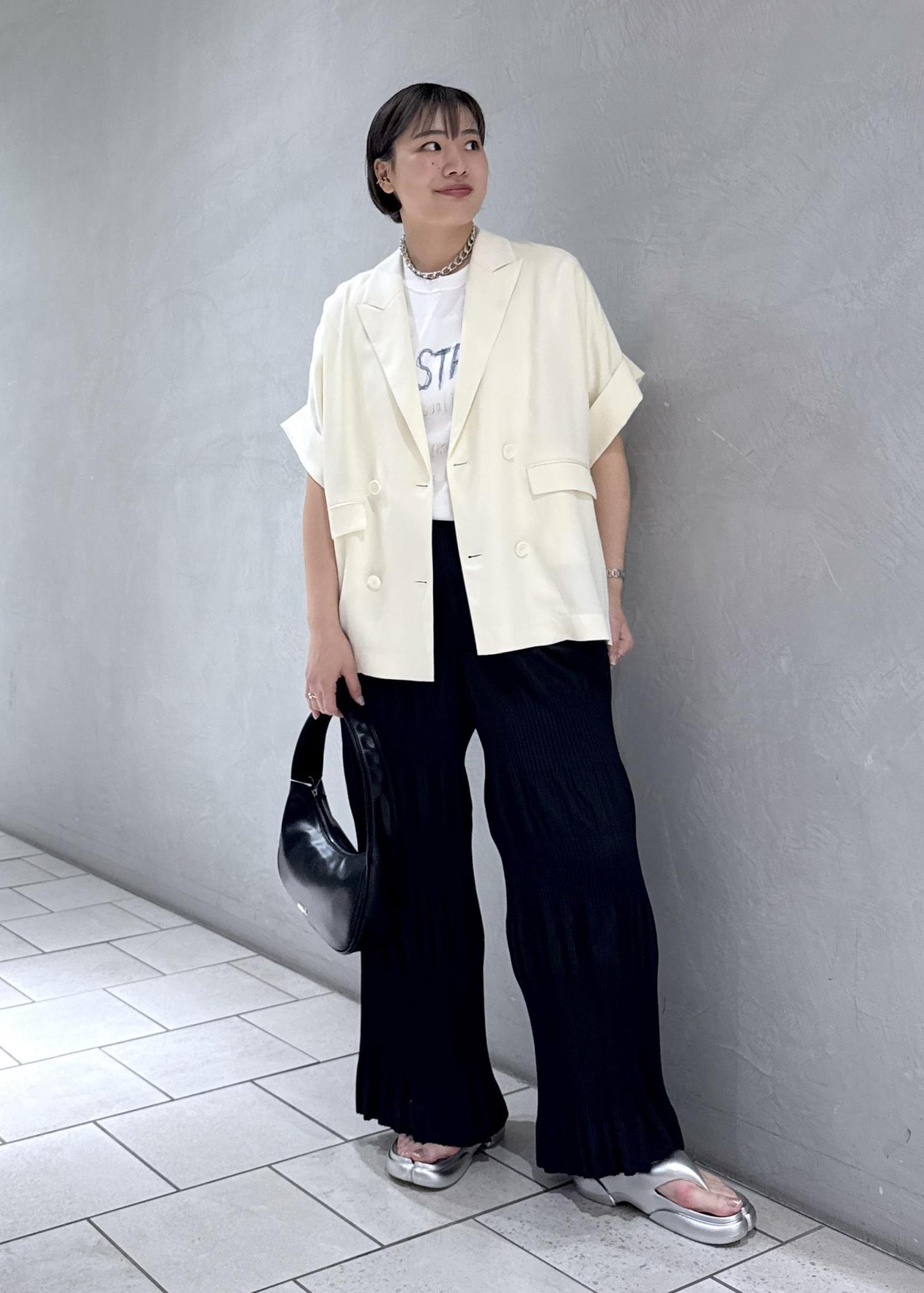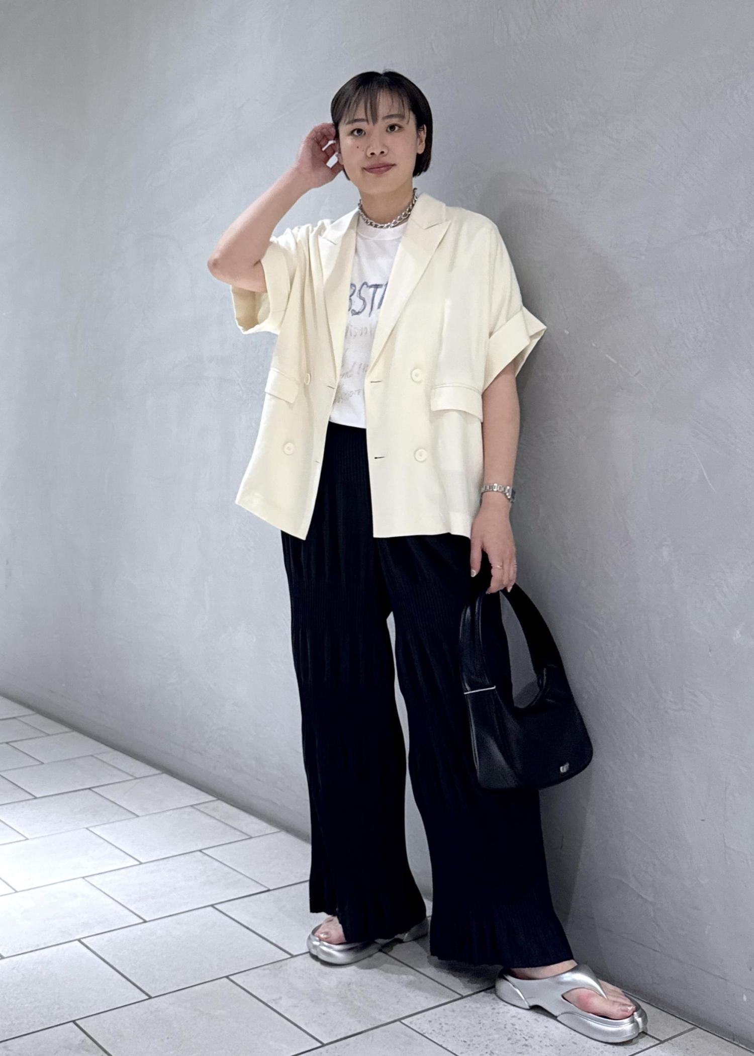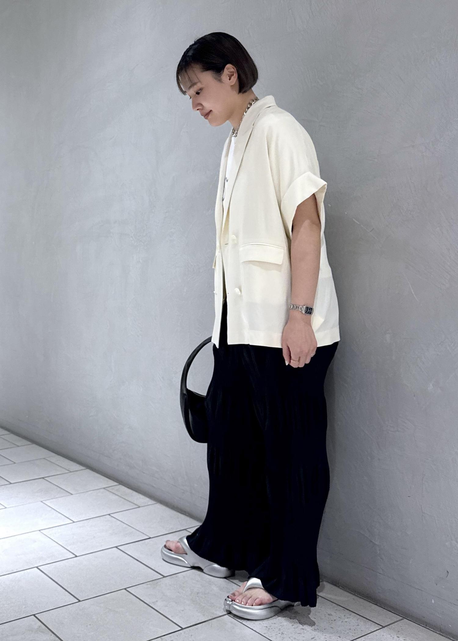 今回は、毎年定番ショートスリーブジャケットを着用したスタイリングのご紹介。