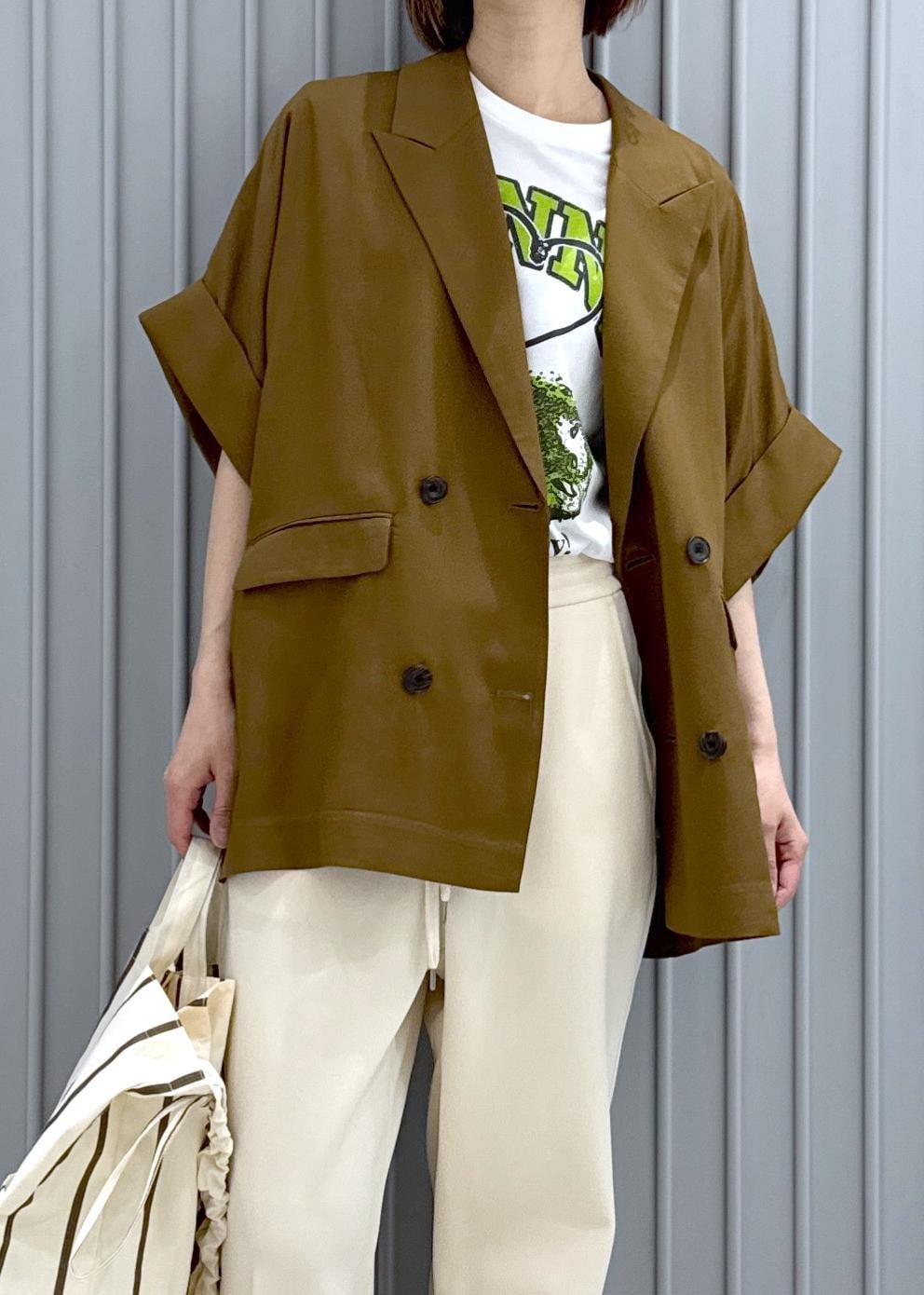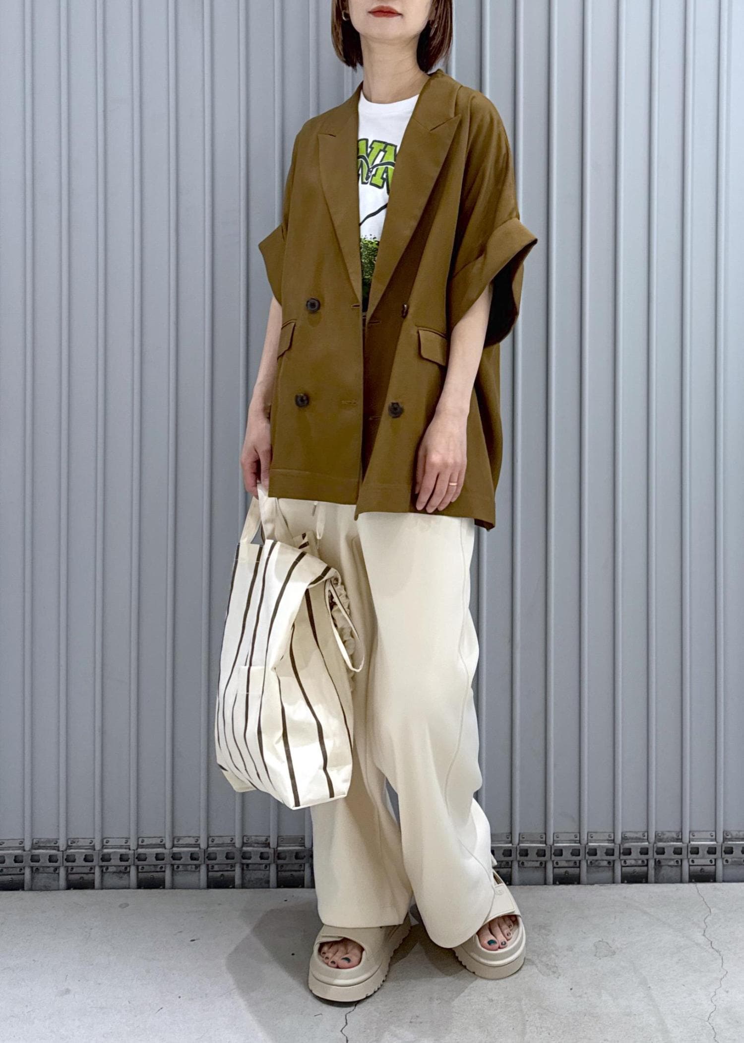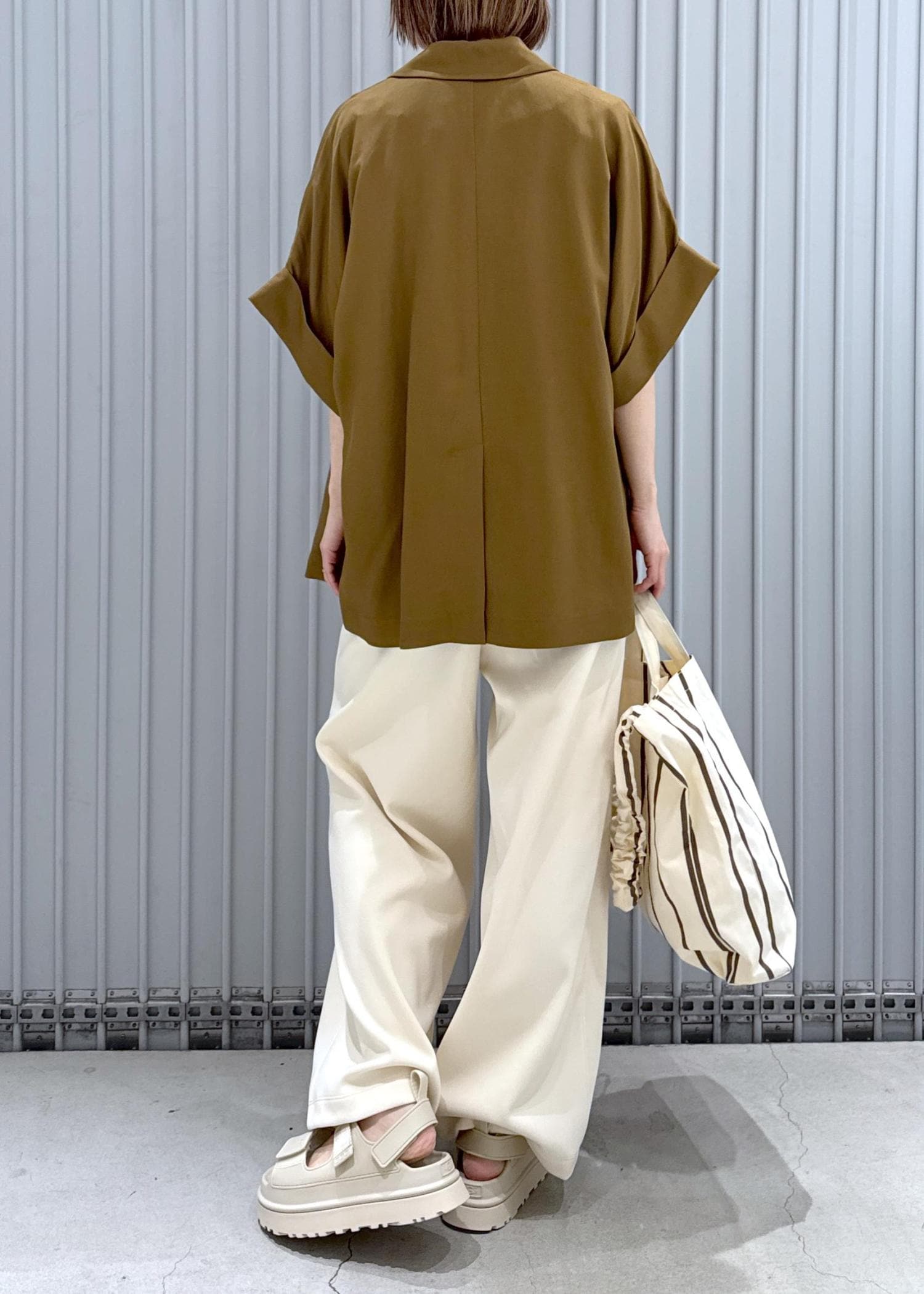 Tシャツにデニムとシンプルなコーディネートに羽織るだけでサマになります。