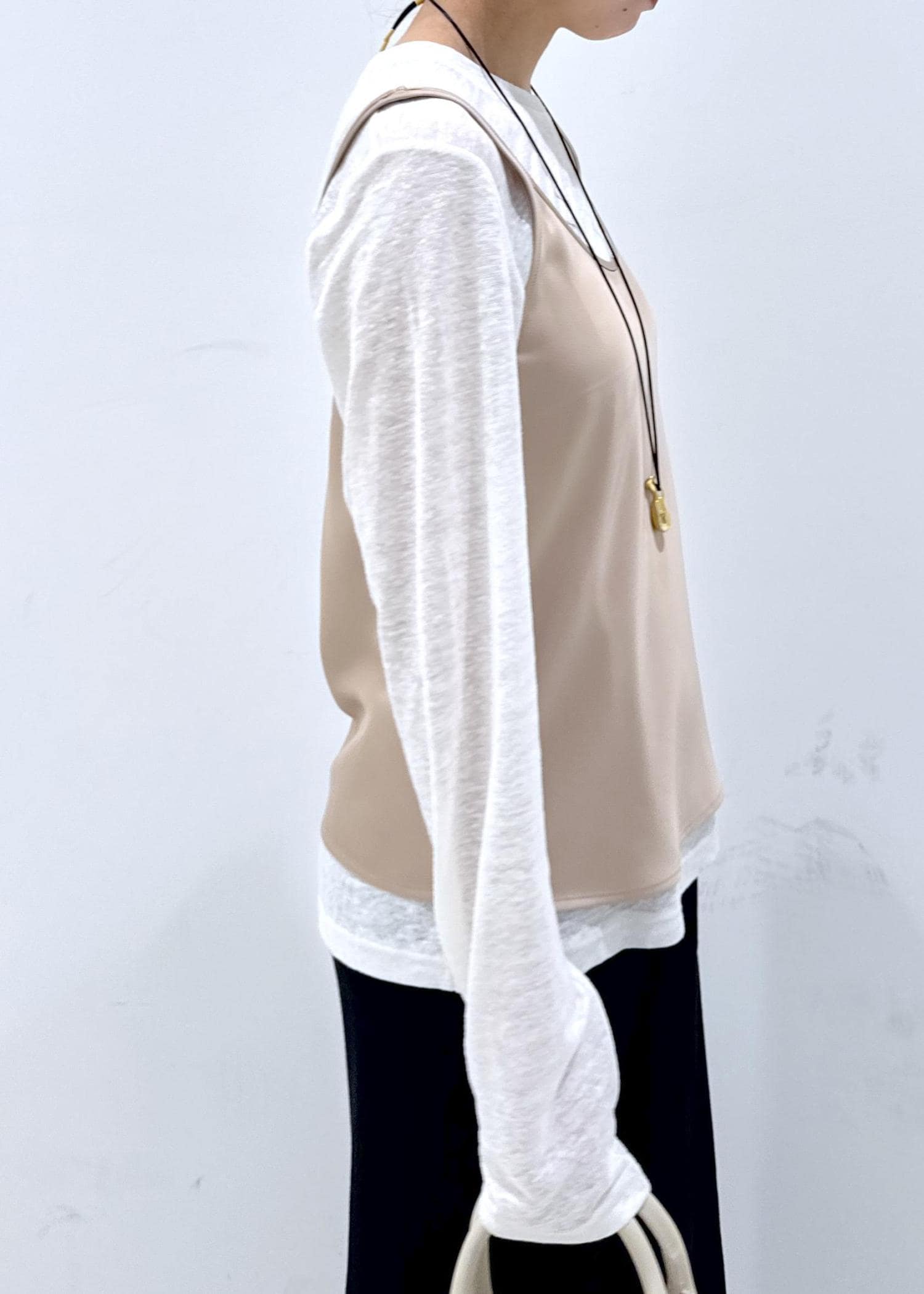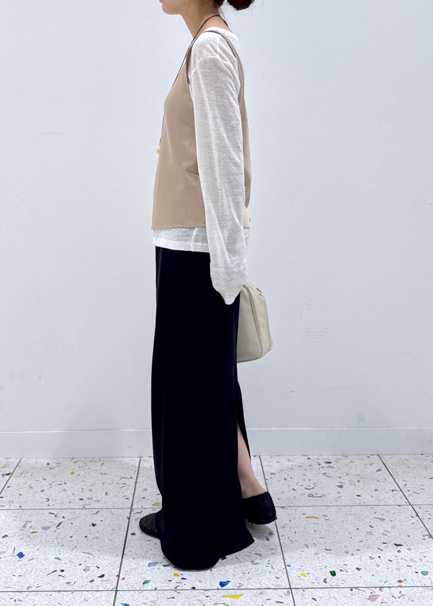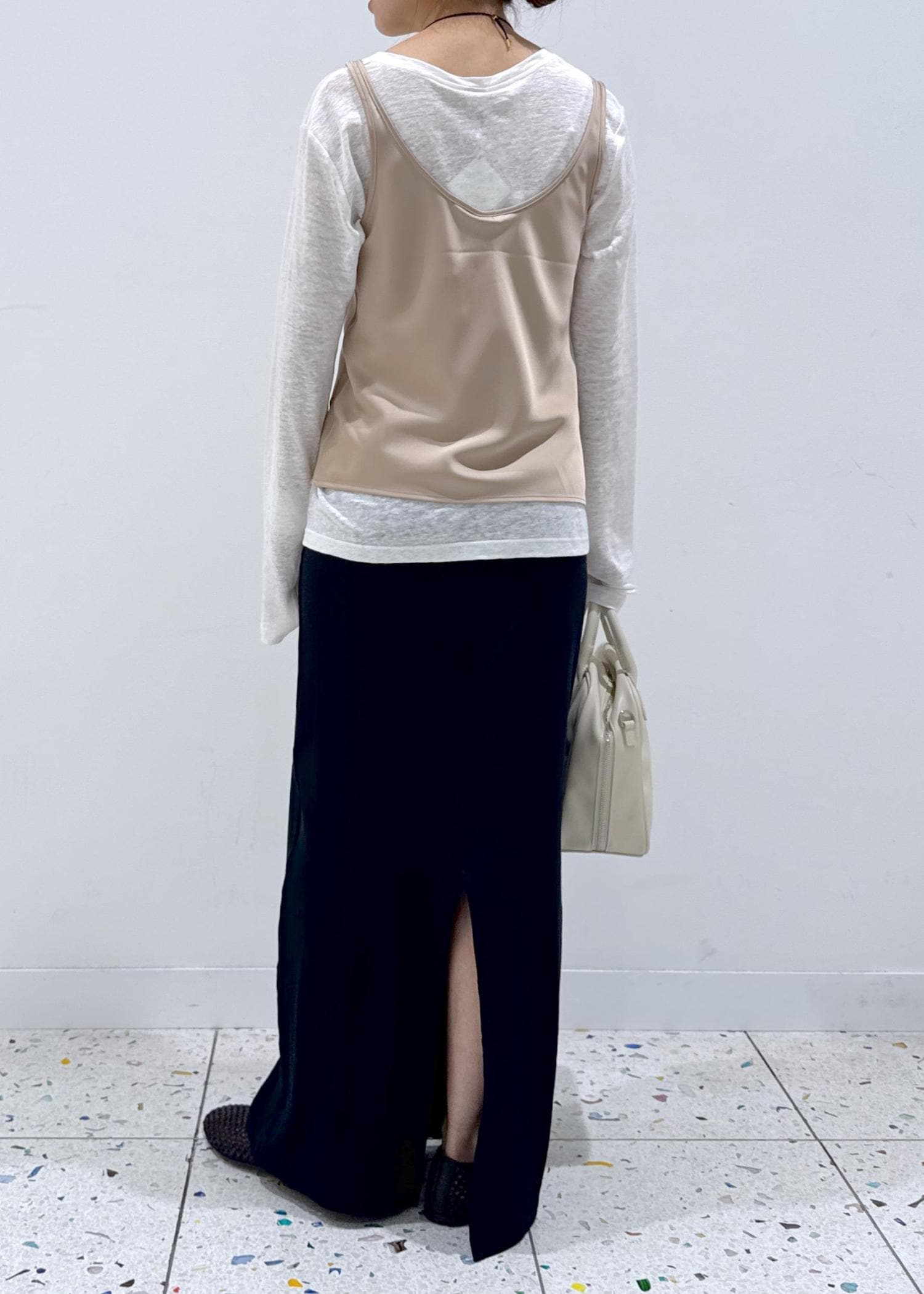 シルクのように柔らかく滑らかな素材で、レイヤードもできますが夏は一枚で着たいですね○
