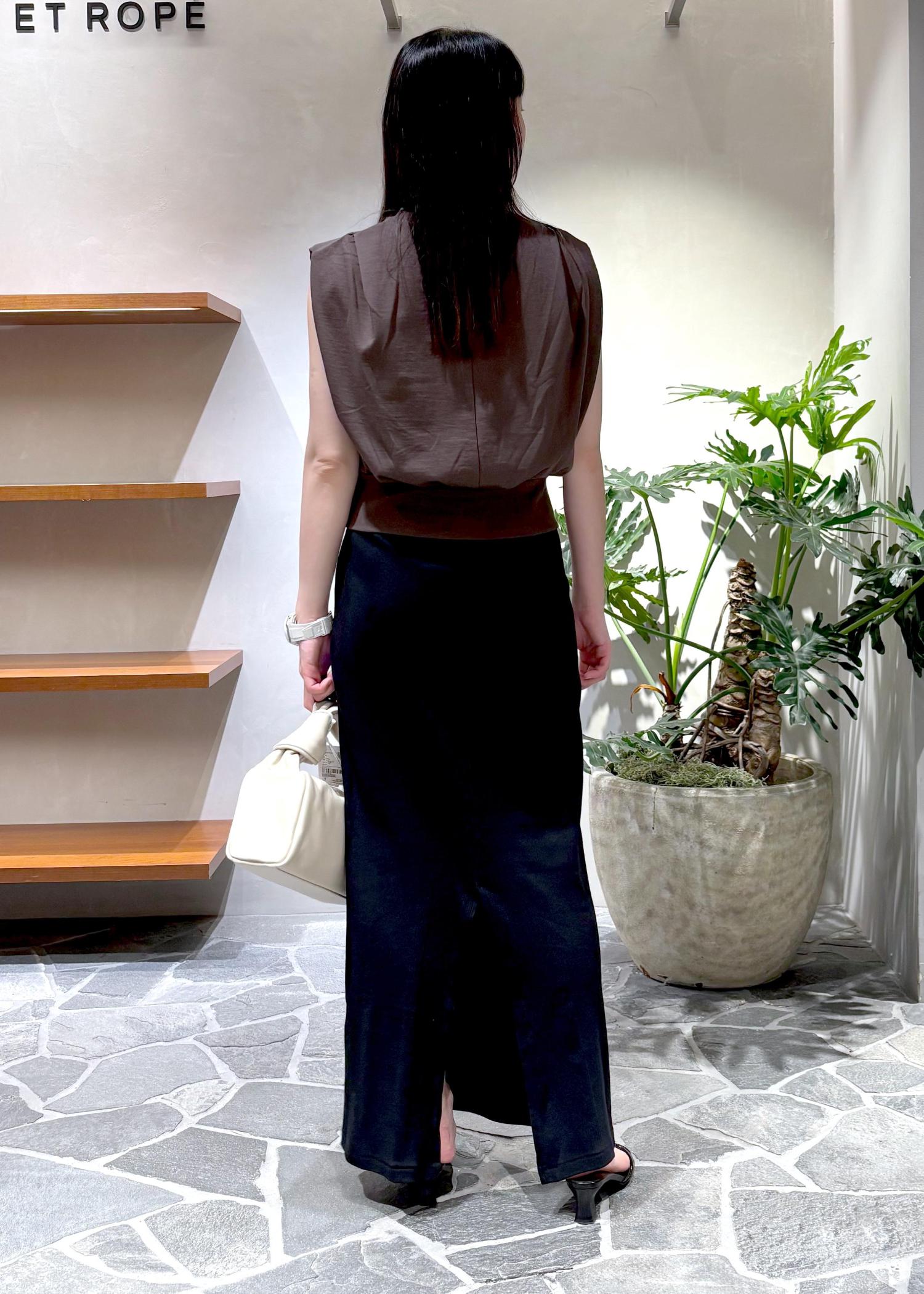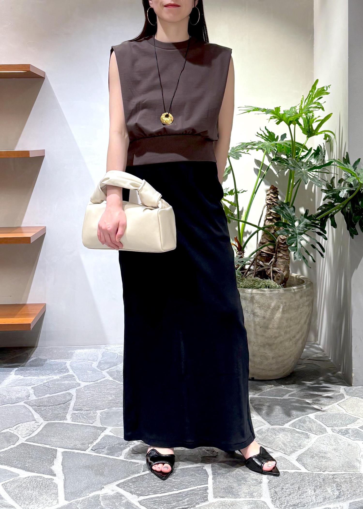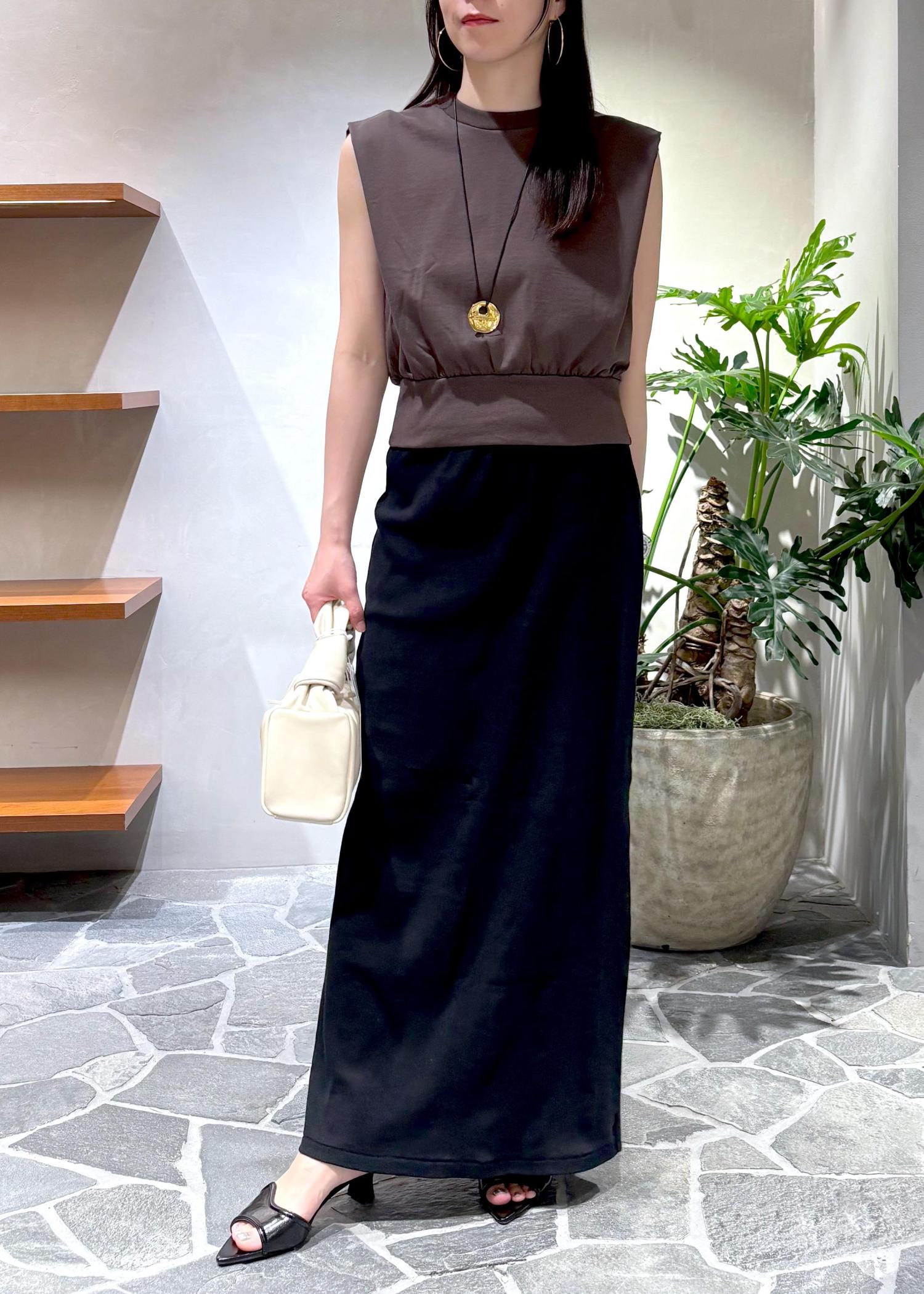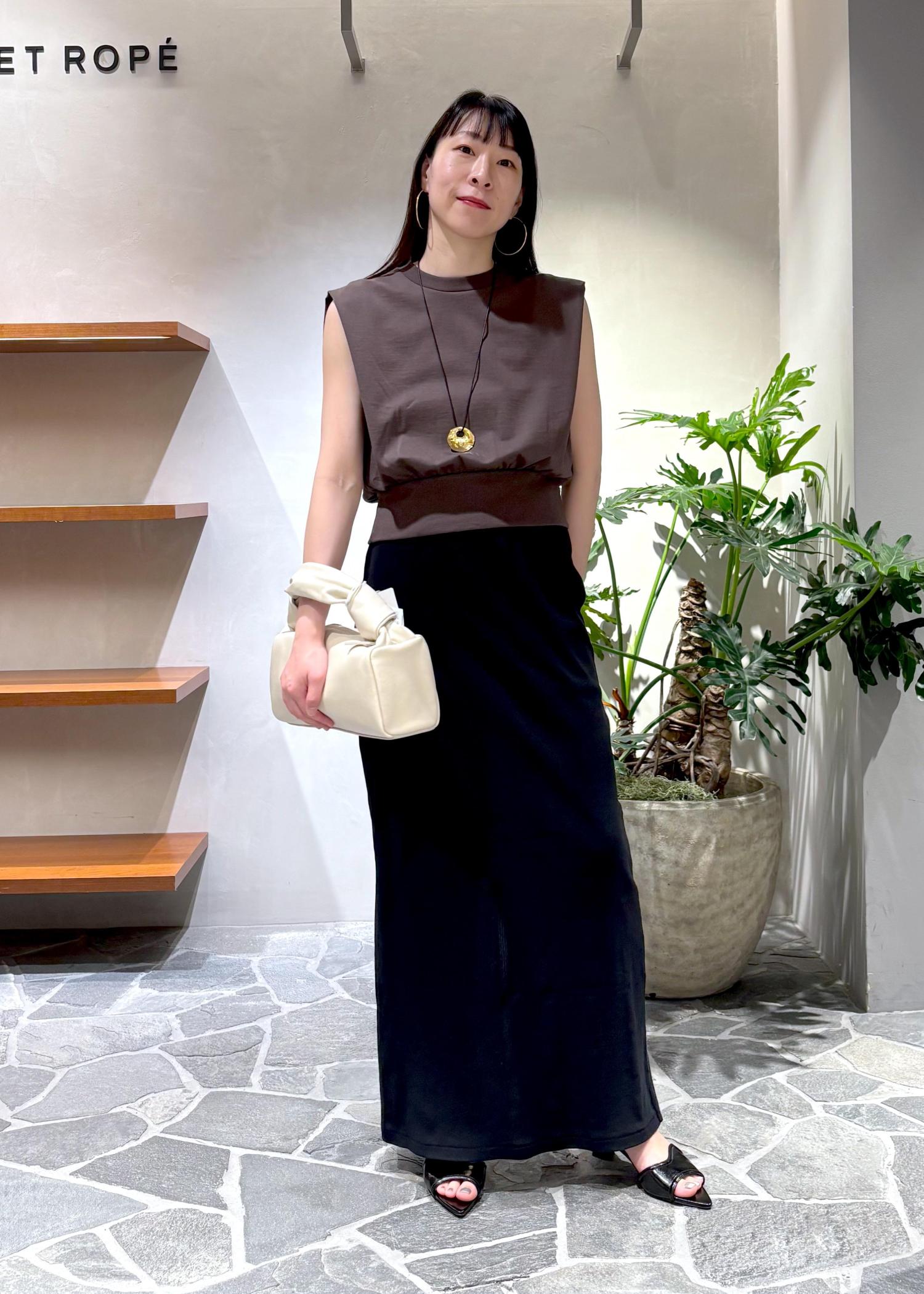 今回は、スウェットトップスと綿100%の柔らかな生地のタイトスカートで、一見ラフ見えするアイテムを、