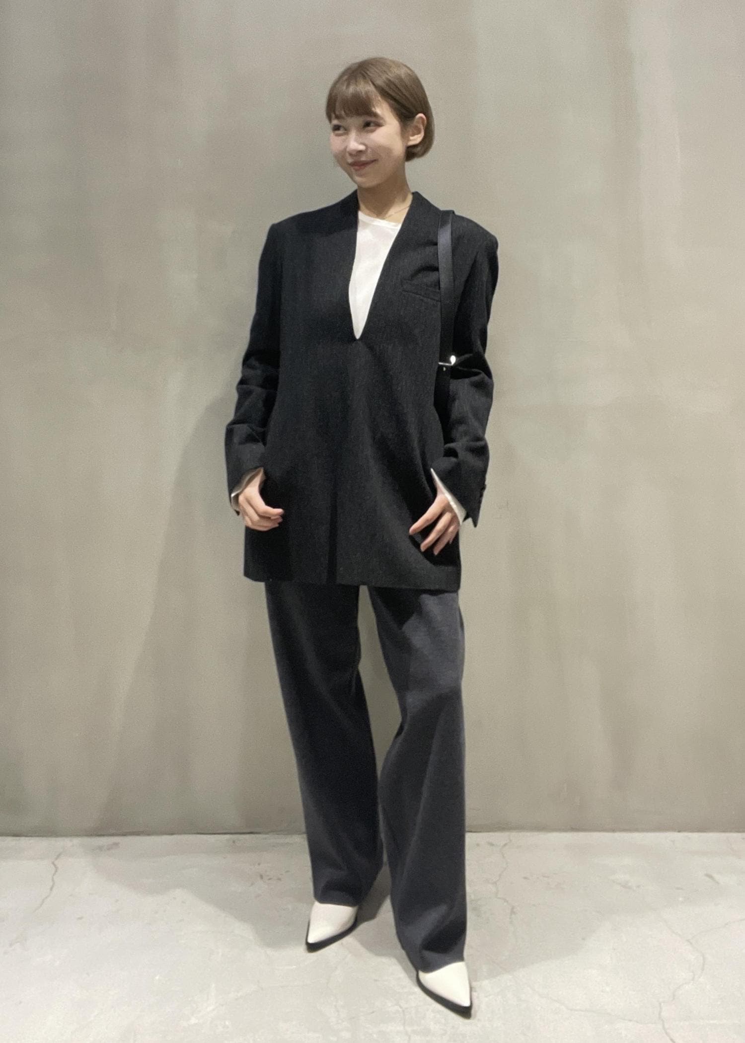 アウトレットADAM ET ROPÉ FEMMEストライプオープンカラージャンプスーツネイビー系 / 36¥11,880レビュージャンプスーツの中でも丈は短め。