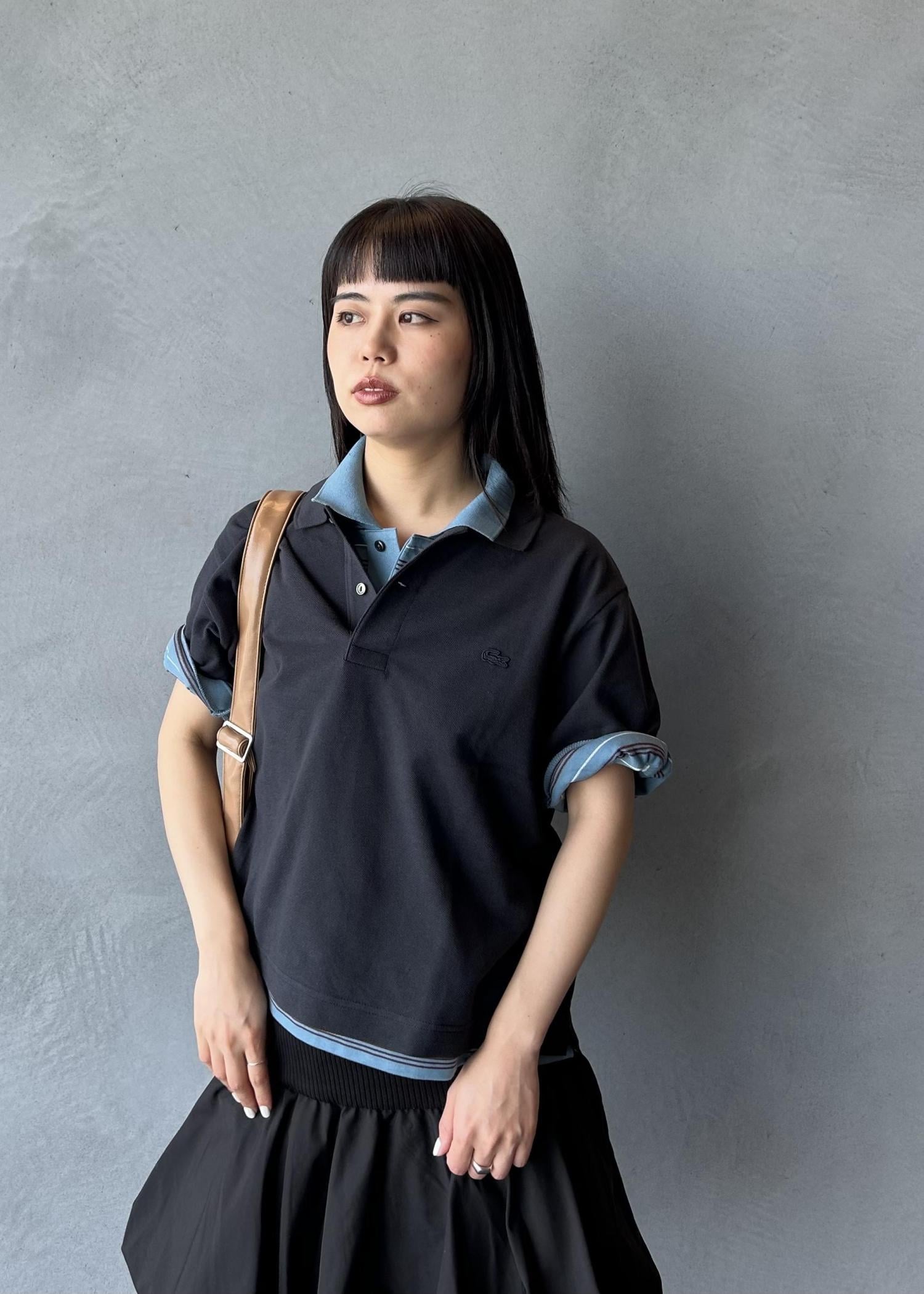 先日アップしたポロシャツの重ね着コーデの色違いをやってみました。